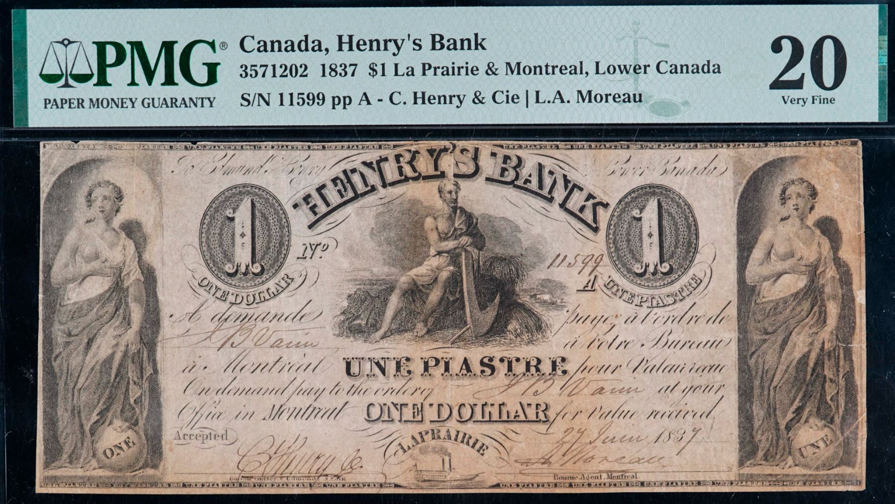 Henry's Bank 1837 $1 #11599 CH-357-12-02 PMG Very Fine-20, small piece added.