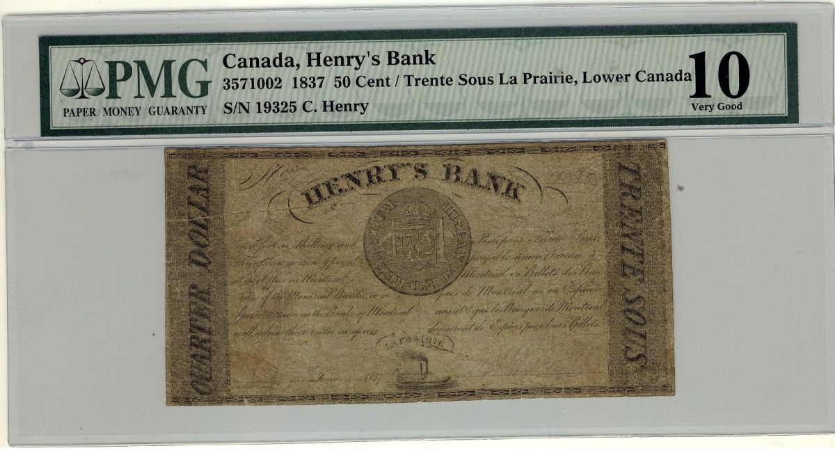 Henry's Bank, 1837 50 cent/trente sous, CH-357-10-02, PMG VG10