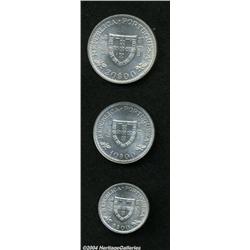 <B>Henry the Navigator Set of Three 1960,</B></I> KM587-588-589. 5-10-20 Escudos. BU. 3 coins <BR><BR><B>Important notice:</B> Heritage usually auctions material at the rate of 200-250 lots per hour. On some occasions eBay Live bid software or the Internet may not be able to keep up with the pace of the auction. We recommend placing a realistic absentee bid now as insurance to avoid disappointment. Occasionally the auctioneer may eliminate or reject an eBay Live bid, and the auctioneer may also reopen a lot after the close of the eBay live bidding (usually because we missed an audience bid), and may reject your bid even if it shows you as the winning bidder. By bidding via eBay Live, you agree that Heritage may award the lot to another bidder at its sole discretion under the circumstances described above or any other reasonable circumstances. Since eBay bids are not shown to us until we open the lot on the floor, we treat those bids just like floor bids. In most cases the floor responds before the eBay bid is presented to us, due to Internet lag time, so for consistency we have made it a policy that floor bids are always considered first over tie eBay live bids. Also please note that all Heritage lots purchased through eBay Live carry a 20% Buyer's Premium. Please make sure you read the Terms and Conditions before you bid.