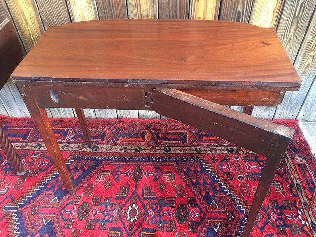 Hepplewhite lift top game table, mahogany, from South Shore, Boston, Mass. area cabinet maker, with banded inlay, all original finish.
