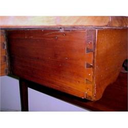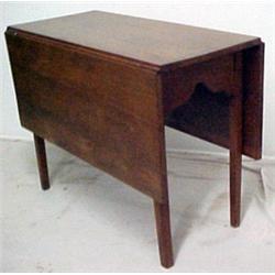 Hepplewhite swing leg drop-leaf table, walnut, scalloped apron, square tapered legs, early 19th C., 29" high x 38" x 18", each leaf measures 16 1/2" Estimate 600/900