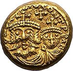 Heraclius (610-641). Solidus of small module, Carthage. Obv. [ ] CONT PP ? B. Crowned, draped and cuirassed facing busts of Heraclius, left, and Heraclius Constantine, right; cross between them. Rev. VICTORIA AG B. Cross potent on two steps; G to right; CONOB in exergue. Cf. D.O. 204. Sear 867. AU. g. 4.41 mm. 12.00 R. EF. Impero Bizantino. Cf. D.O. 204. Sear 867. AU. g. 4.41 mm. 12.00 R.