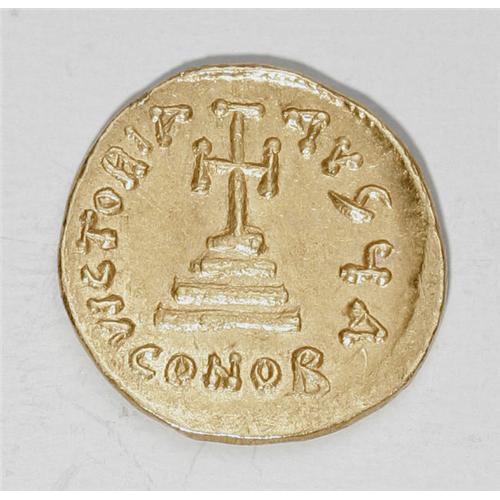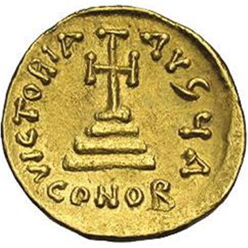 <B>Heraclius, with Heraclius Constantine.</B></I> A.D. 613-632 AD. AV solidus (20 mm, 4.32 gm). Constantinople, A.D. 629-631. Crowned and draped busts of Heraclius and Heraclius Constantine facing; cross in field between their heads / Cross potent on three steps; A/CONOB. DOC 26a; SB 749. VF, clipped.