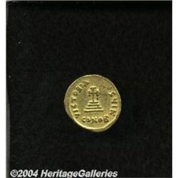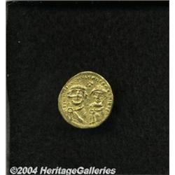 <B>Heraclius.</B></I> A.D. 610-641. AV solidus (19 mm, 4.37 g). Constantinople, ca. A.D. 626-629. Facing busts of Heraclius and Heraclius Constantine, each wearing simple crown; cross above heads / Cross potent on three steps; IK/CONOB. DOC 24; SB 747. VF, reverse graffito in field. <BR><I>From the Geneva Collection.</B></I> <BR><BR><B>Important notice:</B> Heritage usually auctions material at the rate of 200-250 lots per hour. On some occasions eBay Live bid software or the Internet may not be able to keep up with the pace of the auction. We recommend placing a realistic absentee bid now as insurance to avoid disappointment. Occasionally the auctioneer may eliminate or reject an eBay Live bid, and the auctioneer may also reopen a lot after the close of the eBay live bidding (usually because we missed an audience bid), and may reject your bid even if it shows you as the winning bidder. By bidding via eBay Live, you agree that Heritage may award the lot to another bidder at its sole discretion under the circumstances described above or any other reasonable circumstances. Since eBay bids are not shown to us until we open the lot on the floor, we treat those bids just like floor bids. In most cases the floor responds before the eBay bid is presented to us, due to Internet lag time, so for consistency we have made it a policy that floor bids are always considered first over tie eBay live bids. Also please note that all Heritage lots purchased through eBay Live carry a 20% Buyer's Premium. Please make sure you read the Terms and Conditions before you bid.