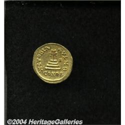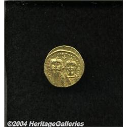<B>Heraclius.</B></I> A.D. 610-641. AV solidus (19 mm, 4.49 g). Constantinople, A.D. 629-631. Facing busts of Heraclius and Heraclius Constantine, each wearing simple crown; cross above heads / Cross potent on three steps; K in right field; (Theta)/CONOB. DOC 30 var. (officina not listed); SB 751. Near XF. <BR><I>From the Geneva Collection.</B></I> <BR><BR><B>Important notice:</B> Heritage usually auctions material at the rate of 200-250 lots per hour. On some occasions eBay Live bid software or the Internet may not be able to keep up with the pace of the auction. We recommend placing a realistic absentee bid now as insurance to avoid disappointment. Occasionally the auctioneer may eliminate or reject an eBay Live bid, and the auctioneer may also reopen a lot after the close of the eBay live bidding (usually because we missed an audience bid), and may reject your bid even if it shows you as the winning bidder. By bidding via eBay Live, you agree that Heritage may award the lot to another bidder at its sole discretion under the circumstances described above or any other reasonable circumstances. Since eBay bids are not shown to us until we open the lot on the floor, we treat those bids just like floor bids. In most cases the floor responds before the eBay bid is presented to us, due to Internet lag time, so for consistency we have made it a policy that floor bids are always considered first over tie eBay live bids. Also please note that all Heritage lots purchased through eBay Live carry a 20% Buyer's Premium. Please make sure you read the Terms and Conditions before you bid.