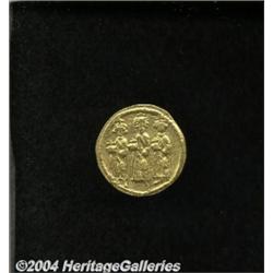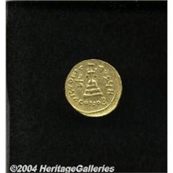 <B>Heraclius.</B></I> A.D. 610-641. AV solidus (20 mm, 4.37 g). Constantinople, A.D. 639(?)-641. Heraclius between Heraclius Constantine, on left, and Heraclonas, on right, standing facing, each holding globus cruciger / Cross potent on three steps; monogram in left field; H/CONOB. DOC 43g; SB 769. VF, reverse graffito. <BR><I>From the Geneva Collection.</B></I> <BR><BR><B>Important notice:</B> Heritage usually auctions material at the rate of 200-250 lots per hour. On some occasions eBay Live bid software or the Internet may not be able to keep up with the pace of the auction. We recommend placing a realistic absentee bid now as insurance to avoid disappointment. Occasionally the auctioneer may eliminate or reject an eBay Live bid, and the auctioneer may also reopen a lot after the close of the eBay live bidding (usually because we missed an audience bid), and may reject your bid even if it shows you as the winning bidder. By bidding via eBay Live, you agree that Heritage may award the lot to another bidder at its sole discretion under the circumstances described above or any other reasonable circumstances. Since eBay bids are not shown to us until we open the lot on the floor, we treat those bids just like floor bids. In most cases the floor responds before the eBay bid is presented to us, due to Internet lag time, so for consistency we have made it a policy that floor bids are always considered first over tie eBay live bids. Also please note that all Heritage lots purchased through eBay Live carry a 20% Buyer's Premium. Please make sure you read the Terms and Conditions before you bid.