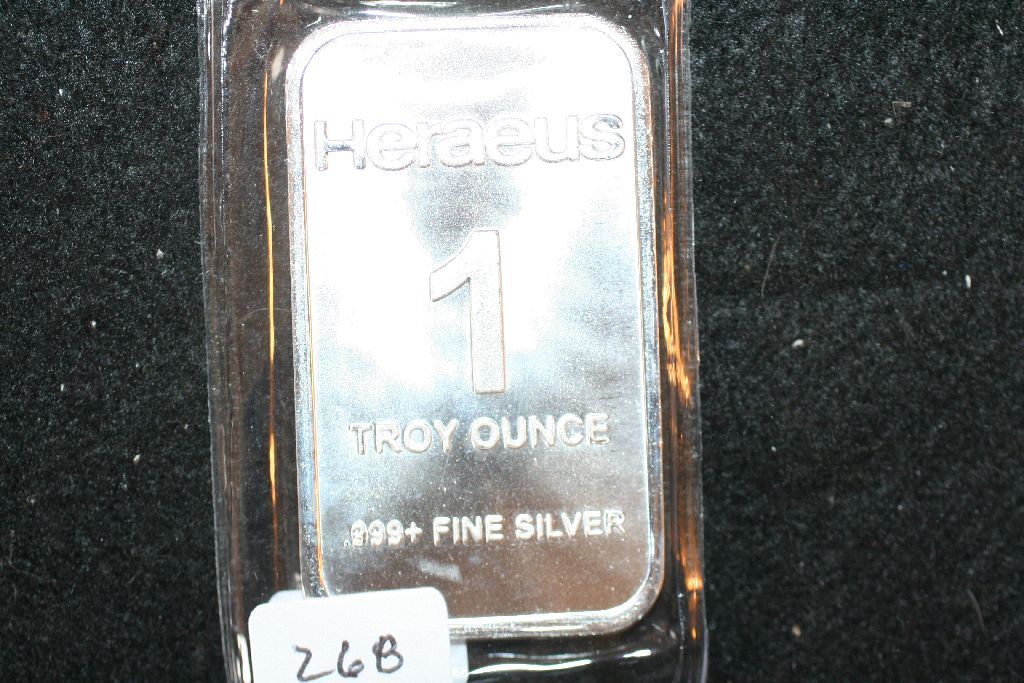 Heraeus Silver Ingot; 999+ Fine Silver 1 Oz.