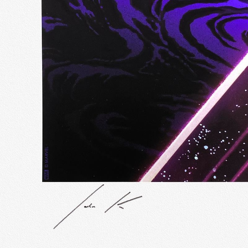 "Heralds of Galactus - Variant" is a limited edition giclee on paper from Marvel Comics and John Keaveney, PP numbered 3/4 and bearing the authorized signature of the artist. Includes Letter of Authenticity. Measures approx. 24" x 18" (border) 20" x 14" (image).