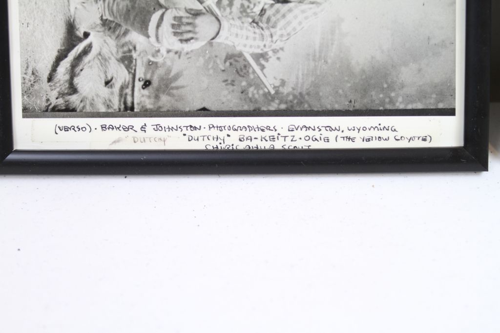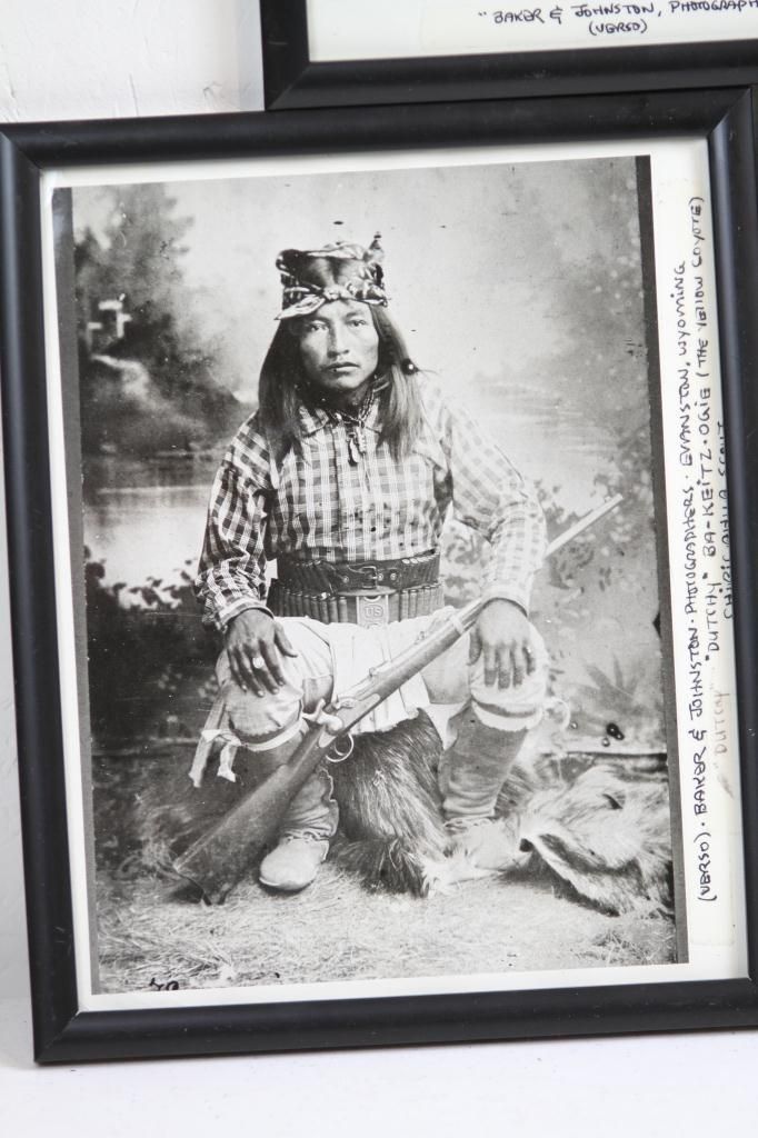 Herb Peck Jr Collection Photographs These Photographs are from the Herb Peck Jr Collection. Excellent original photographs of Native Americans. Including, "Baker & Johnston, Photographers vero", "Baker & Johnston Photographers Evanston, Wyoming 'Dutchy' BaKeitzOgie (The Yellow Coyote) Chiricahua Scout", and "Buchwan & Hartwell Tucson, A.T." All are 9"x11" framed.
