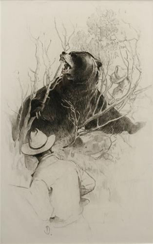 Herbert "Buck" Dunton (1878-1936). "Meeting the Charge". 21" x 13 ½”. Charcoal Drawing. (est $8,000-10,000).