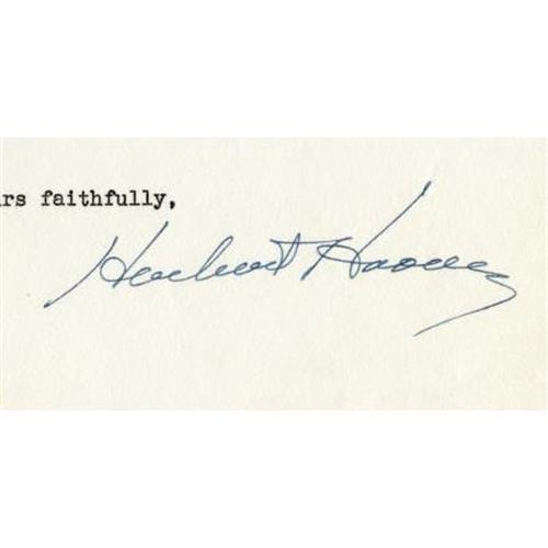 <B>Herbert Hoover Typed Letter Signed</B></I> <I>"Herbert Hoover". </B></I>Two pages, 7.25” x 10.5”, personal letterhead, April 6, 1943. Though he served only one embattled term as President, Herbert Hoover (1874-1964) enjoyed three productive decades of public service on a global scale after leaving the White House. Raised in the Quaker faith, he was concerned with the issue of world peace throughout his long life. Dubbed “The Great Humanitarian” for his relief work during and after World War I, he pursued a similar course in the aftermath of World War II. In this wartime letter to William D. Mitchell typed in his apartment at the Waldorf Astoria Towers in New York, Hoover writes in part: <I>“I receive constant demand or expression of hope for the formulation of more adequate, more realistic and more definite bases of peace policies. The issue is new since the last Party Conventions and will be at the door in another year. The subject should not be partisan, but the constructive views of Republicans would be helpful to the whole country. …We proposed wholly new approaches to the machinery for making lasting peace so as to avoid another debacle like Versailles. Yours faithfully, Herbert Hoover” </B></I>The letter is in fine condition, with two folds and a paper-clip mark in the upper left corner.<BR><BR><b>Shipping:</b> Flat Material, Small (<a target="_blank" href="http://www.heritageauctions.com/common/shipping.php">view shipping information</a>)