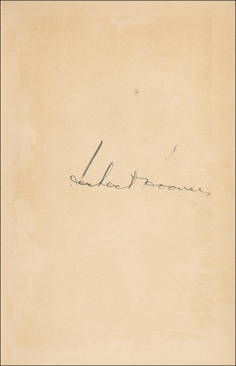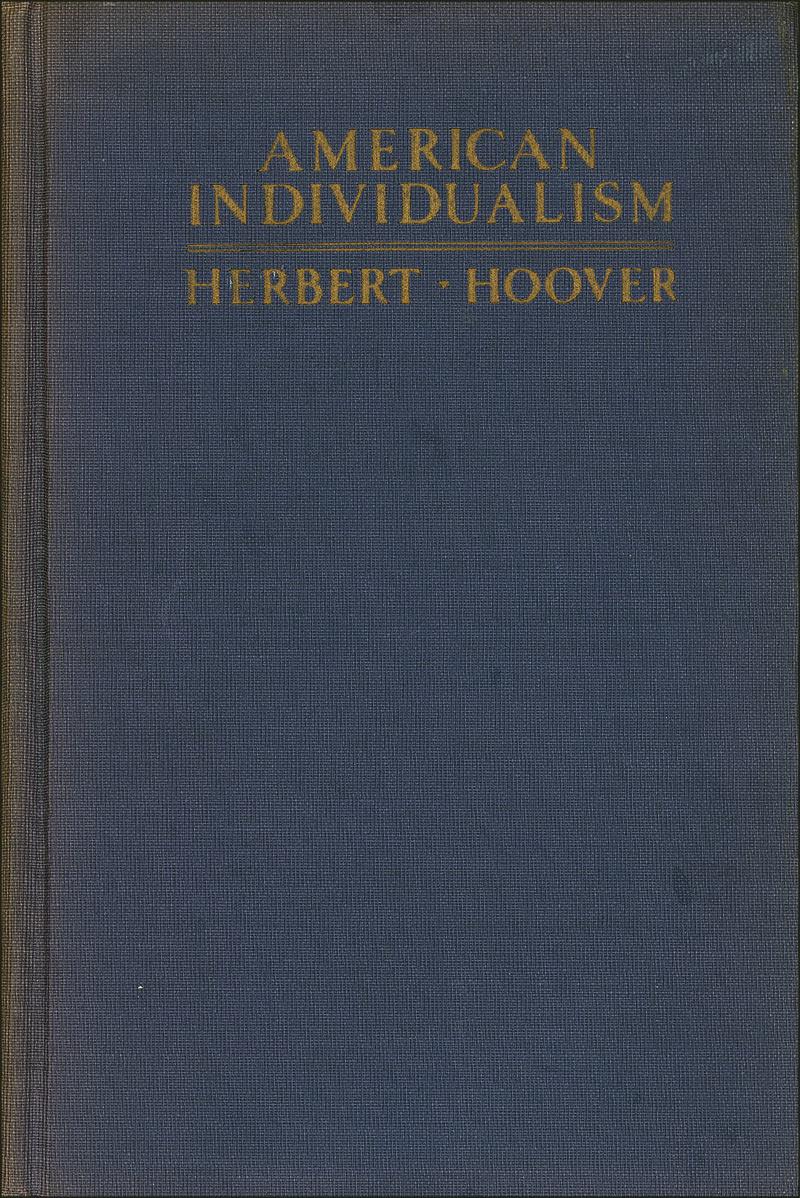 Signed book: American Individualism. Later printing. NY: Doubleday, Page, and Company, 1923. Hardcover, 4.75 x 7.25, 72 pages. Signed on the first free end page by Hoover. In very good condition, with toning to signed page and fore-edges, scattered light wear to covers, and wear and sunning to spine.