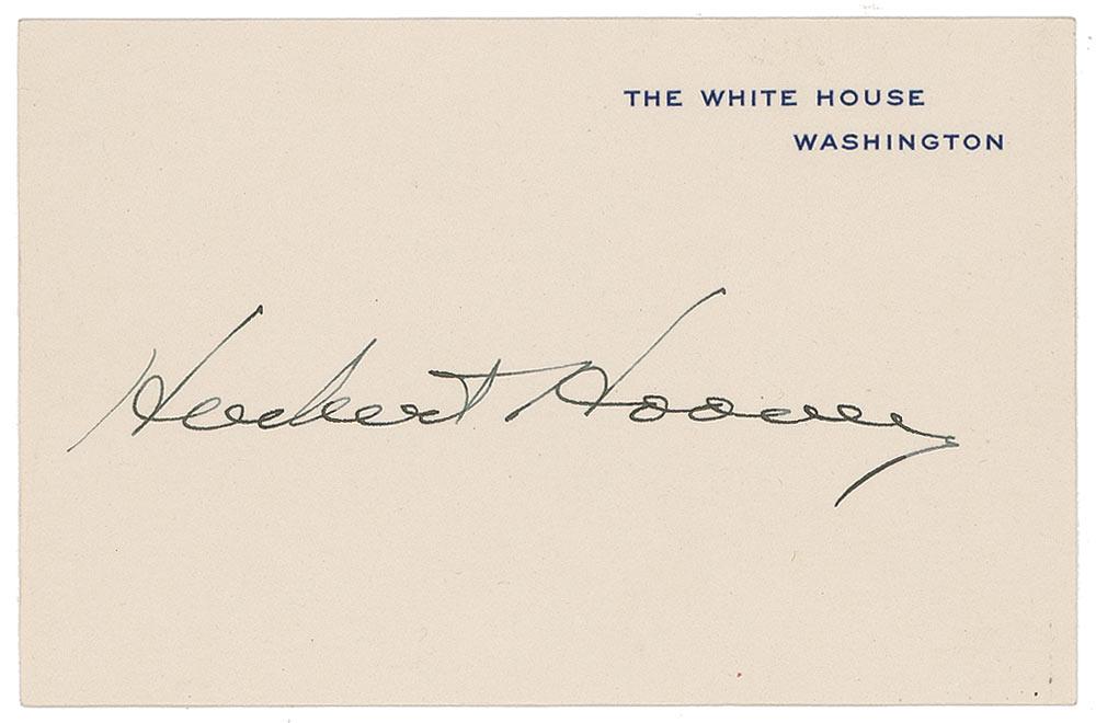 White House card, crisply signed in black ink, “Herbert Hoover.” In fine condition.