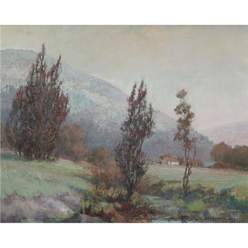 Herbert J.Day (American, early 20th century), House in a Landscape, c.1930;oil/canvas,24in. x 30in., signed.Day worked in Illinois and Indiana, and exhibited at the Art Institute of Chicago in the 1920s.