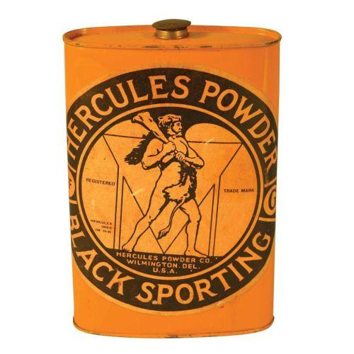 Hercules Black Sporting Powder Tin with paper label. Excellent condition. 4 X 6 1/2 X 1 inches.