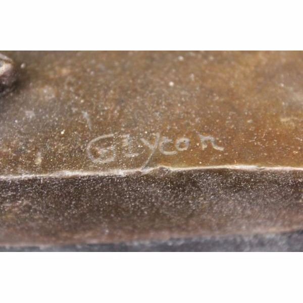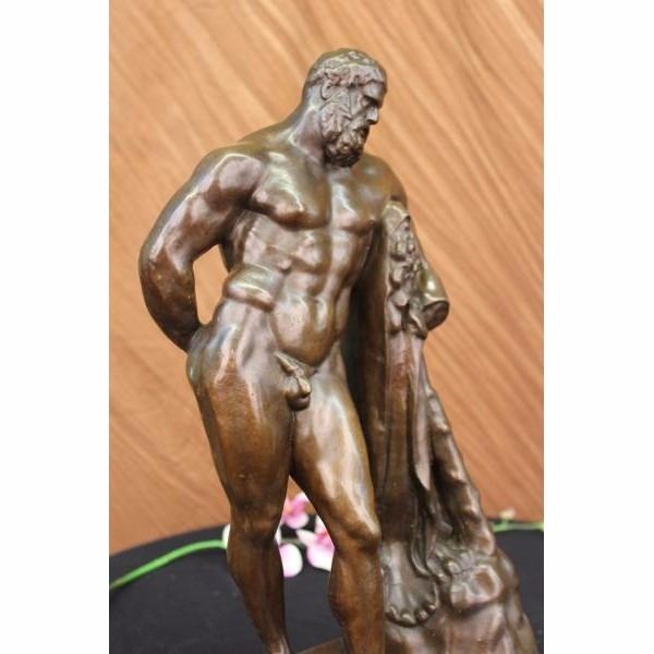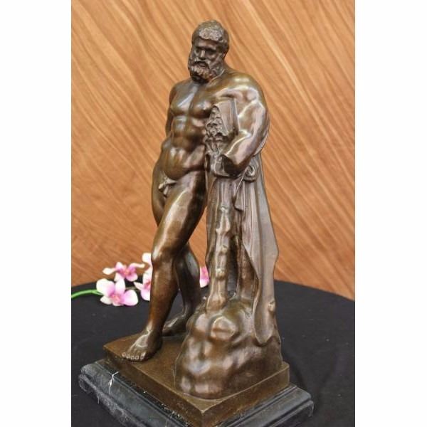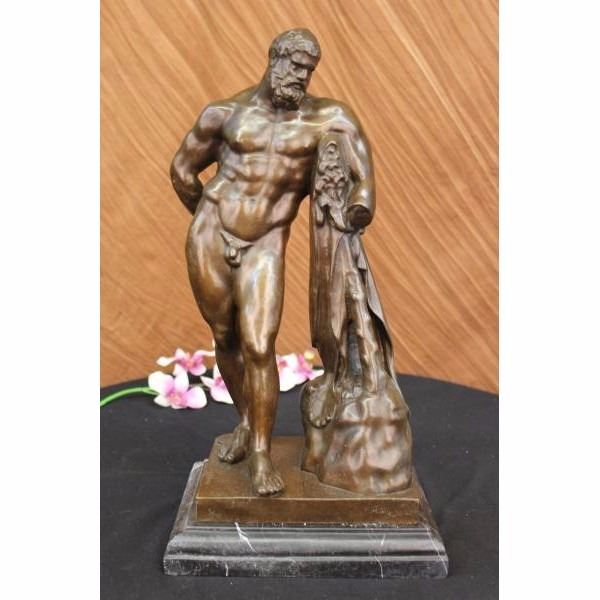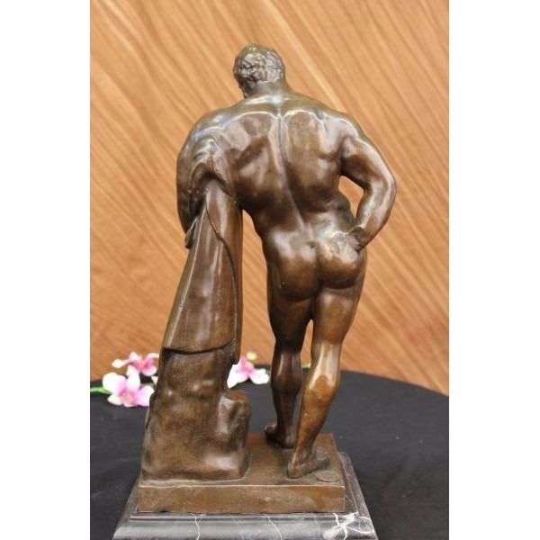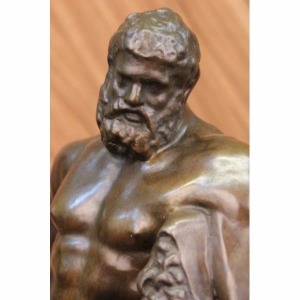 This Burly Man Stands Nude. His Profound Muscles Are Evident In Every Part Of His Body. Although His Body Is Physically Perfect, The Man Has Suffered An Injury That Holds His Gaze. The Man'S Arm Is Without A Hand. He Hangs His Arm Over A Rock Staring At Wrist And Arm That Should Be. There Is A Complexity In This Sculpture Beyond The Mere Physical Beauty Of His Body. This Piece Would Be A Great Addition To A Or Office. The Sculpture Stands On A Black Marble Base. It Is Signed Glycon. The Ancient Lost Wax Method Was Used To Craft This Piece. Bronze dimensions with marble base: Height 19 X Width 10 inches. Weight: 27 lbs.