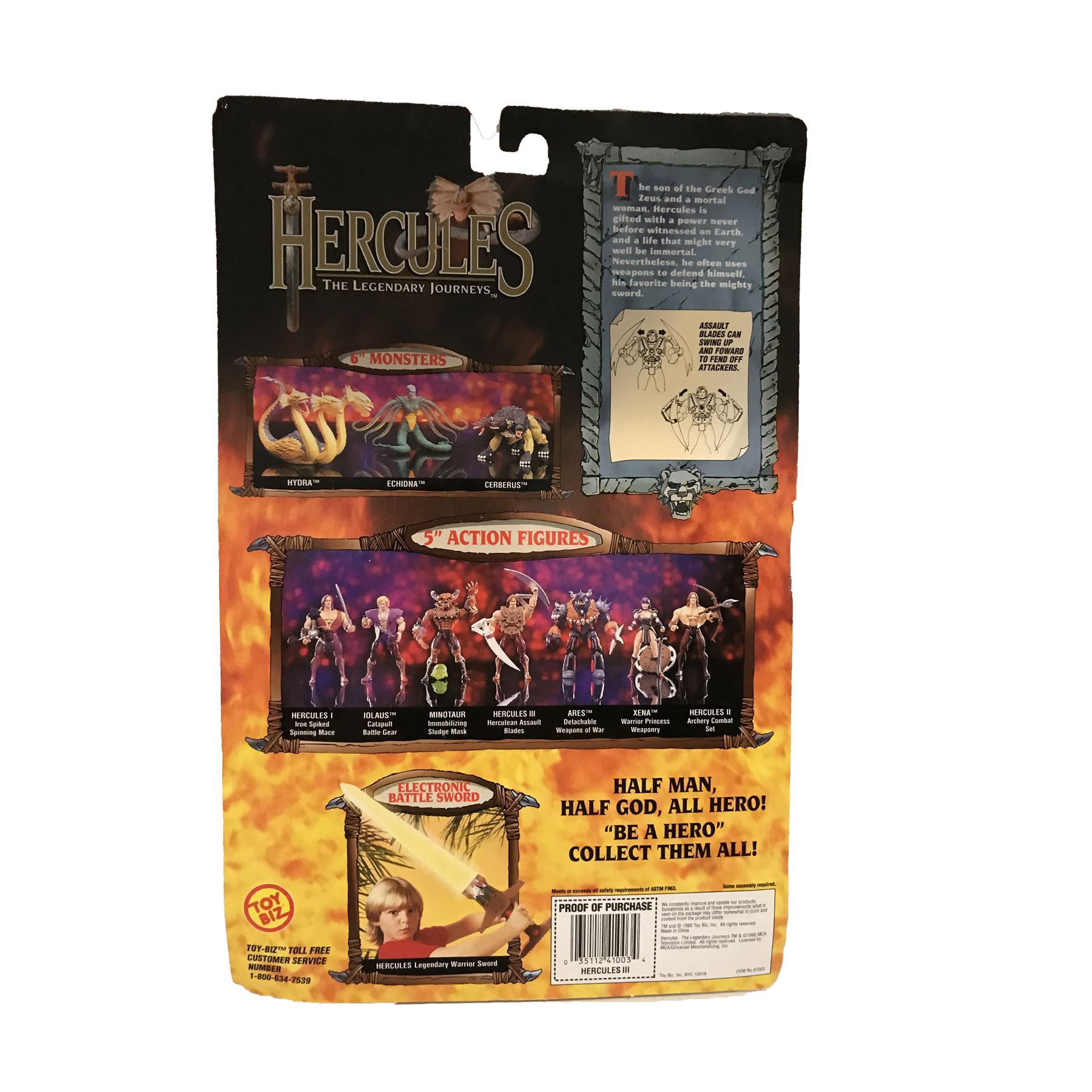 Hercules: The Legendary Journeys unopened action figure of Michael Hurst as Lolaus, includes Hercules and his assault blades, blades can swing up and forward. (12"x9") All items come direct from the collection of the western chairman of Xena Warrior Princess' official fan club.
