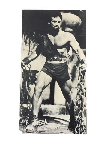 A vintage black and white photo of the actor and Steve Reeves from the movie Hercules Unchained (Warner Bros., ca. 1959). Litho. There are creases, marks, stains and edge wear damage. Fine. (8" X 15").