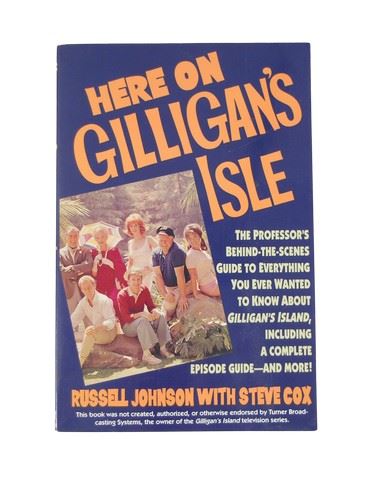 Here on Gilligan's Isle soft cover book by Russell Johnson with Steve Cox and autographed by the author. Measures approximately 9 1/4" x 6 1/4".