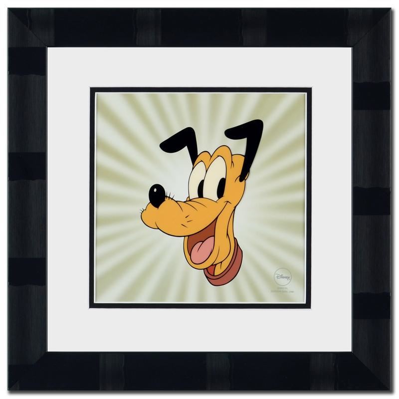 "Here's Pluto" is a limited edition sericel from a sold out edition by Disney, marked with the Disney logo! This piece comes framed and is ready to hang. Includes Certificate of Authenticity! Measures approx. 16" x 16" (with frame); 8.5" x 8.5" (image).