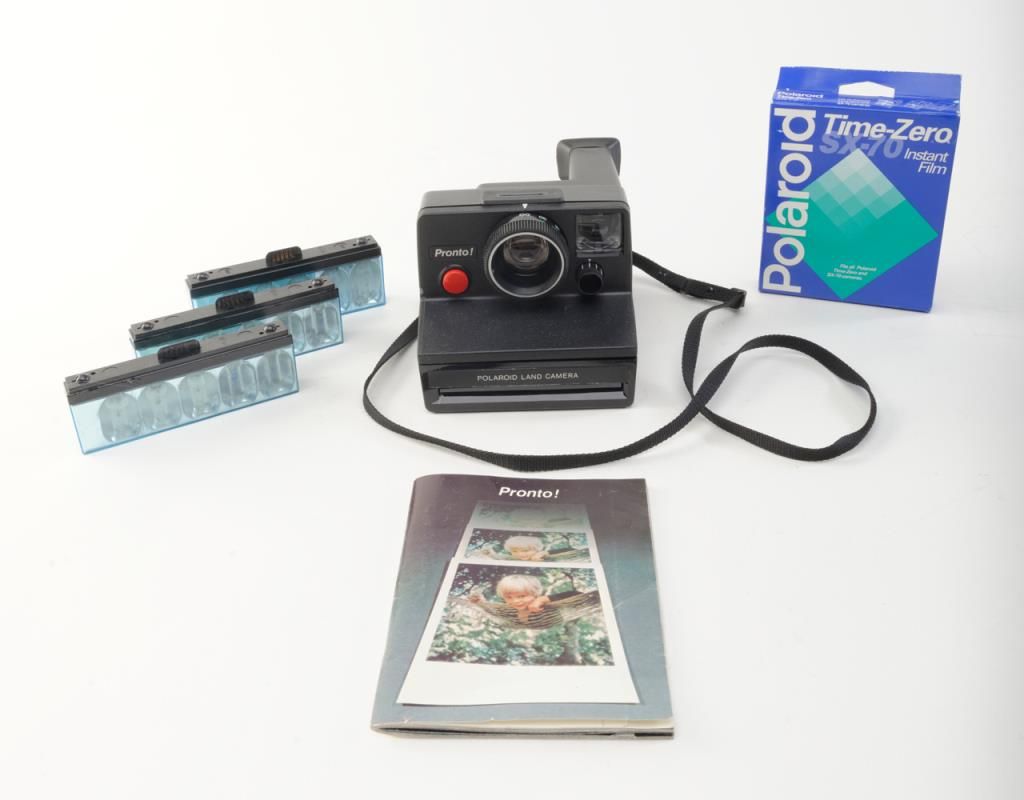 Here’s a blast from the past . . . . a Polaroid Pronto Land Camera in what appears to be fine condition and what may be even rarer, an un-opened film cartridge! Est.: $25-$50.