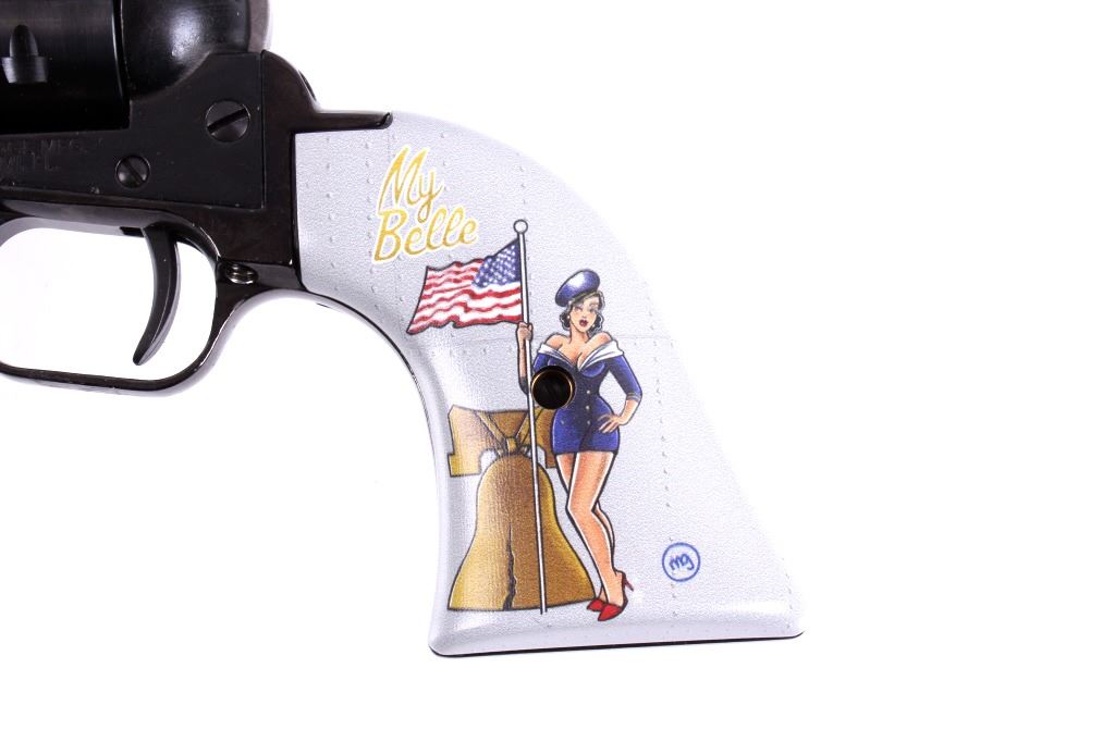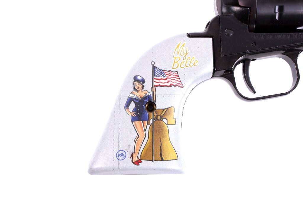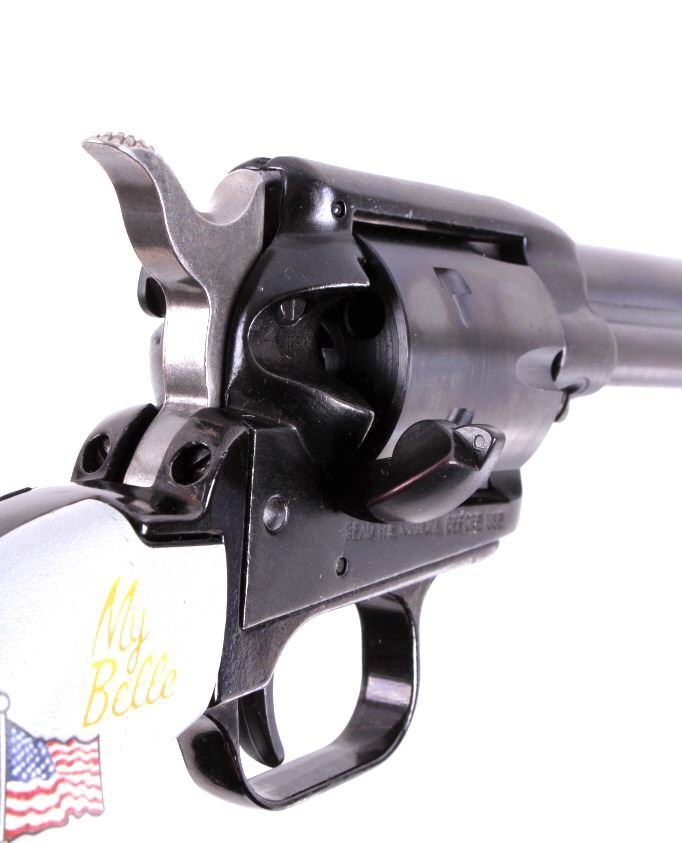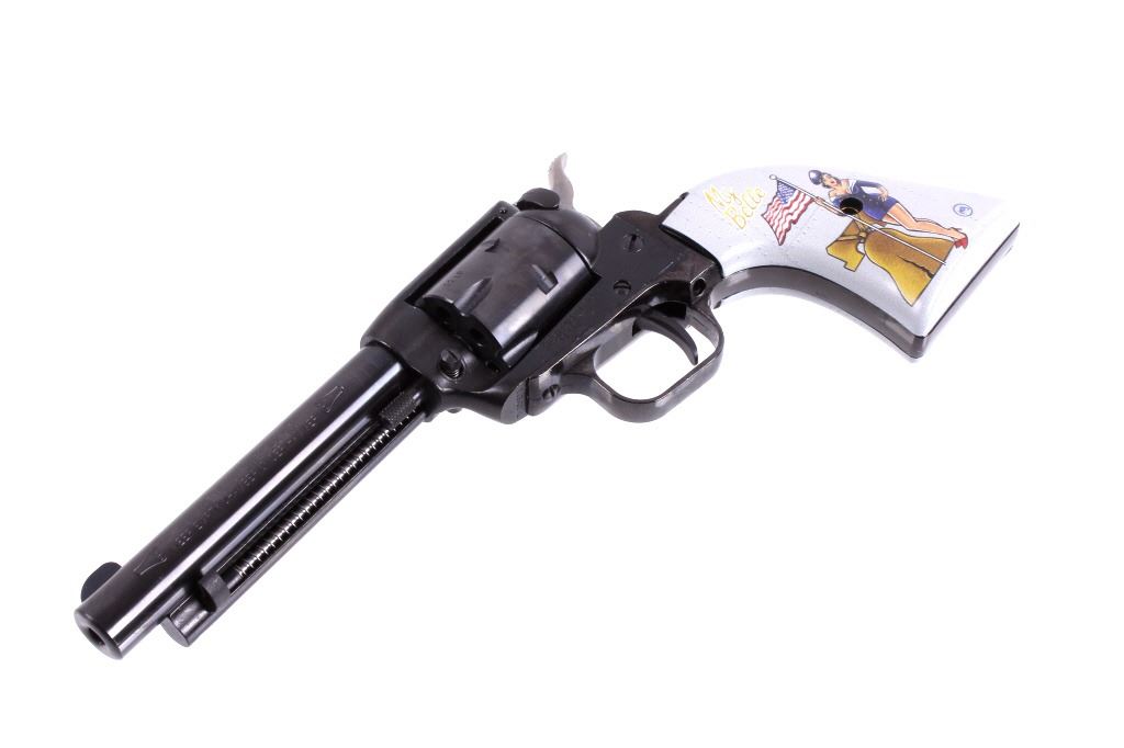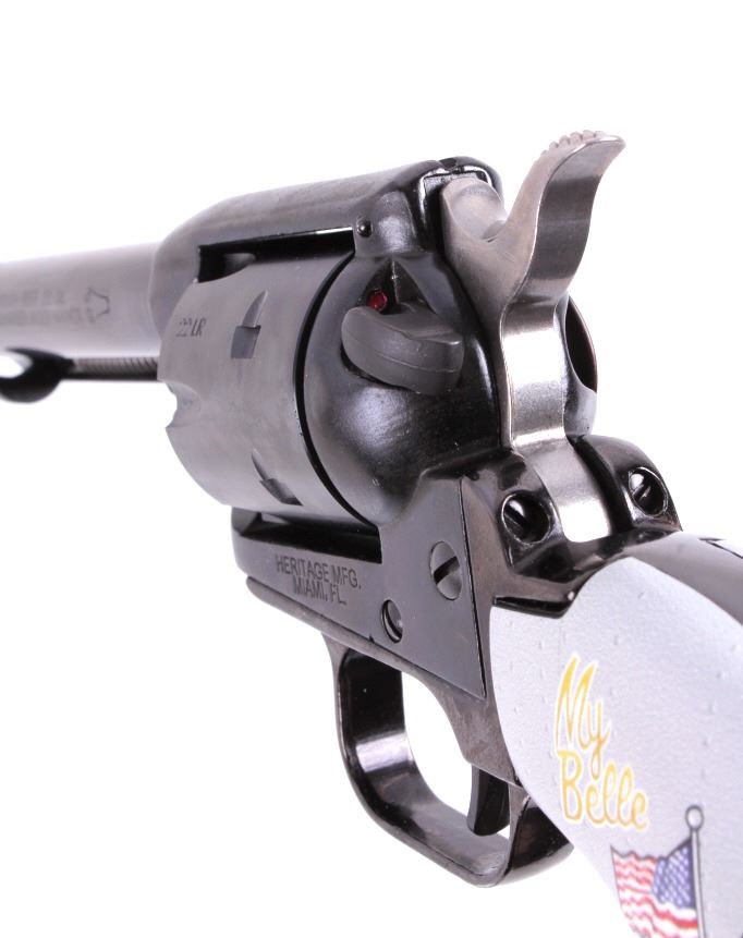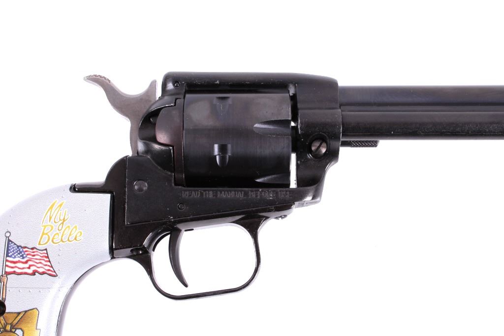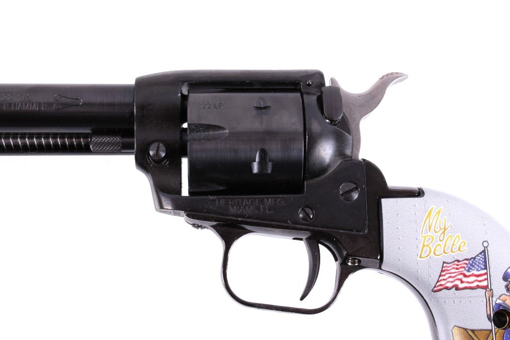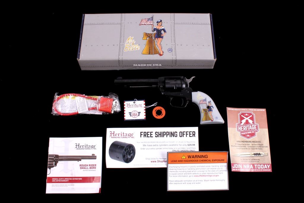Included in this lot is a Heritage Arms “My Belle” Rough Rider .22 caliber revolver. This “My Belle” Rough Rider revolver is chambered in .22 Long Rifle and is fitted with a 4 ¾” barrel with original factory blue. The barrel is marked on the left with scroll work and reads “Heritage Rough Rider .22 Cal”. The cylinder is stamped and reads “22 LR”. The revolver is fit with custom “My Belle” grip panels. This firearm comes with matching factory box, manual, and lock. Serial Number: TL0D1573. This is a modern firearm and requires a FFL transfer or NICS background check.