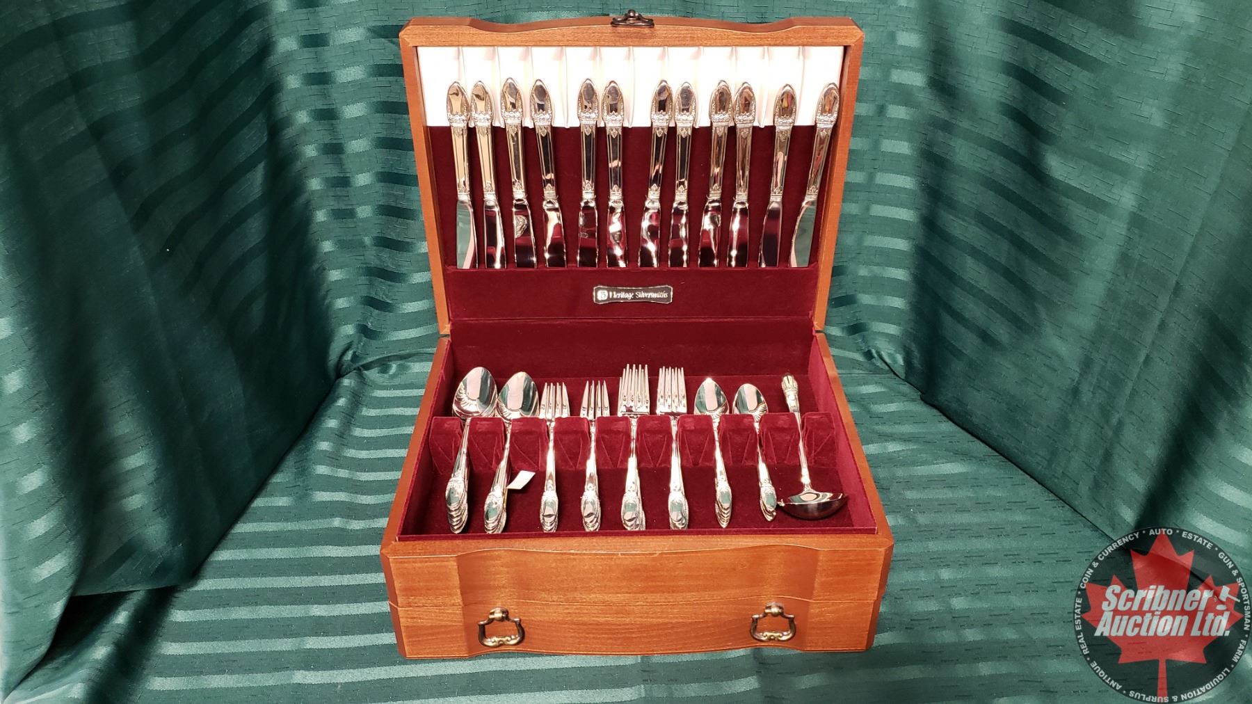 Heritage Silversmiths Silverware Set with Case (12 Place Setting)