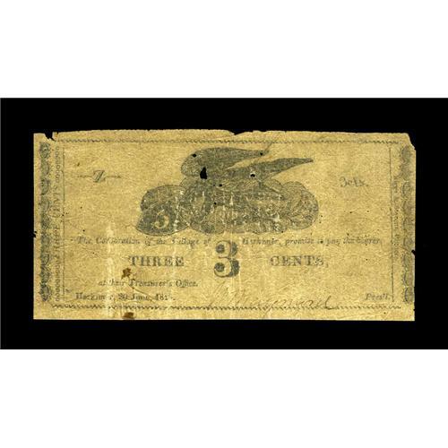 <B>Herkimer, NY- 3¢ June 20, 1814 Harris UNL</B></I><BR>This denomination is unlisted in Harris. <B>Very Good,</B></I> with a few petty holes.