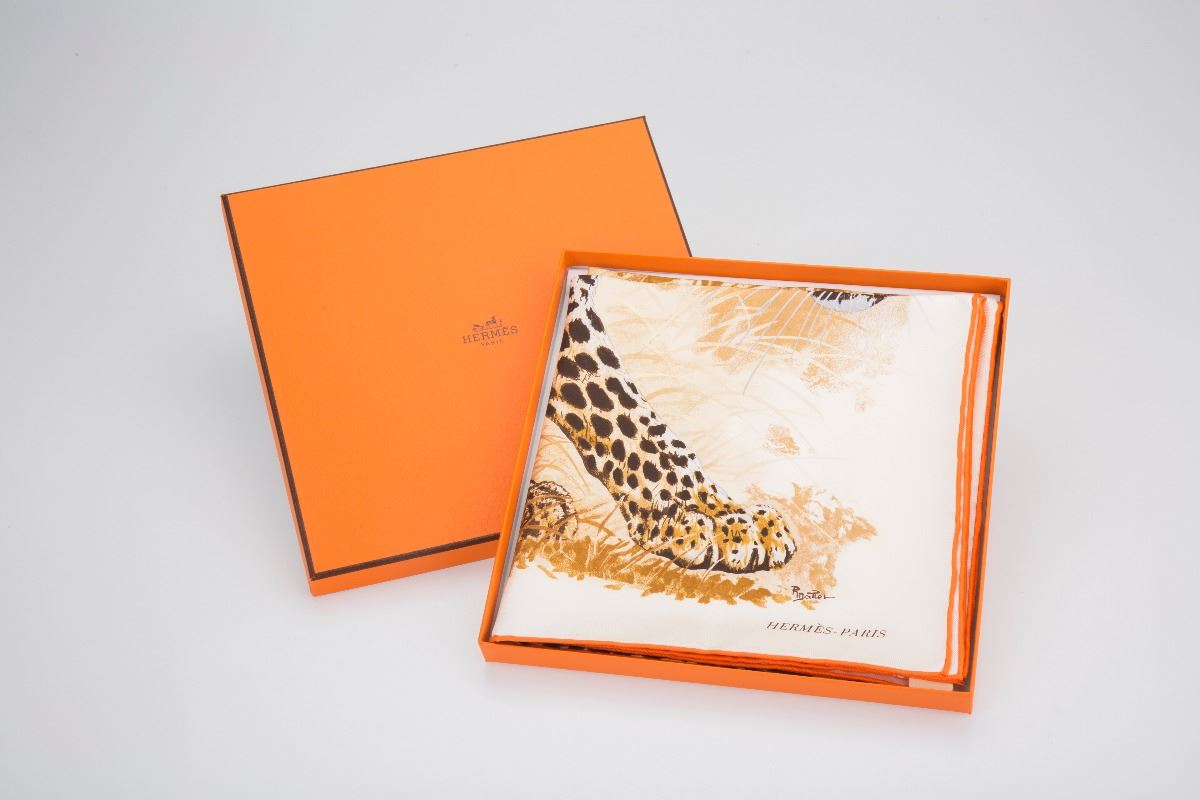 Today, the studies form part of the heritage collection of the house of Hermès. Dallet’s assured hand and confident drawing are especially striking – the fruit of days and weeks spent observing and sketching from life. The animal seems to emerge from out of the silk square. The panther is the embodiment of the force of Nature itself; its gaze, fur and posture are astonishingly lifelike.