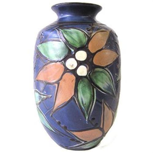 This lovely old Danish ceramic vase, designed by Herman Kahler, measures 10.5" high by 6" in diameter and weighs 3 lbs. 9 oz. Impressed mark "DANMARK" and hand-inscribed mark " H K ".