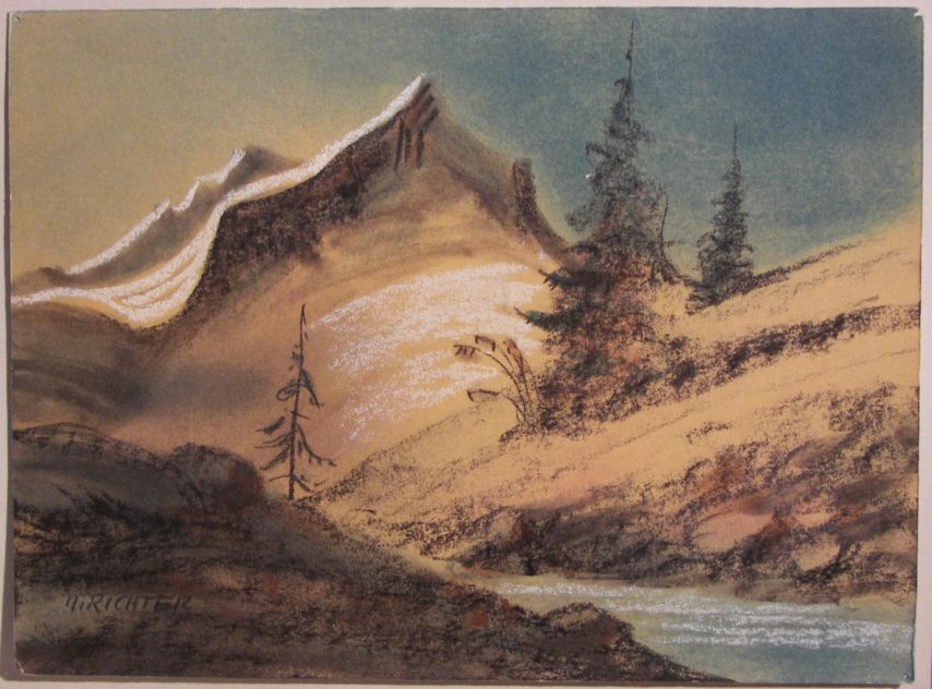 , Herman Richter (1875-1941) , Pastel on Paper , "Peak and Stream" , 8" x 10 1/2" , Signed Lower Left , (7637)