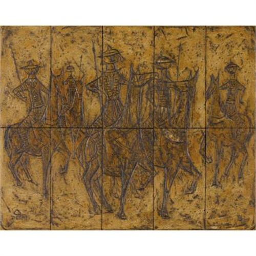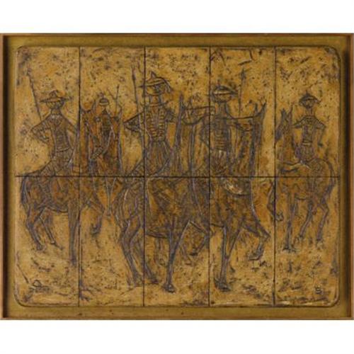 <B>Dutch Contemporary Engraved Ceramic Tiles<BR></B></I>Herman Sanderrs, The Netherlands<BR>Twentieth Century<BR>#35, entitled <I>Horsemen<BR></B></I>Marked <I>Delft</B></I> to lower left tile.<BR>21 inches high x 26 inches wide<BR><BR><b>Shipping:</b> Requires 3rd Party Shipping (<a target="_blank" href="http://www.heritageauctions.com/common/shipping.php">view shipping information</a>)