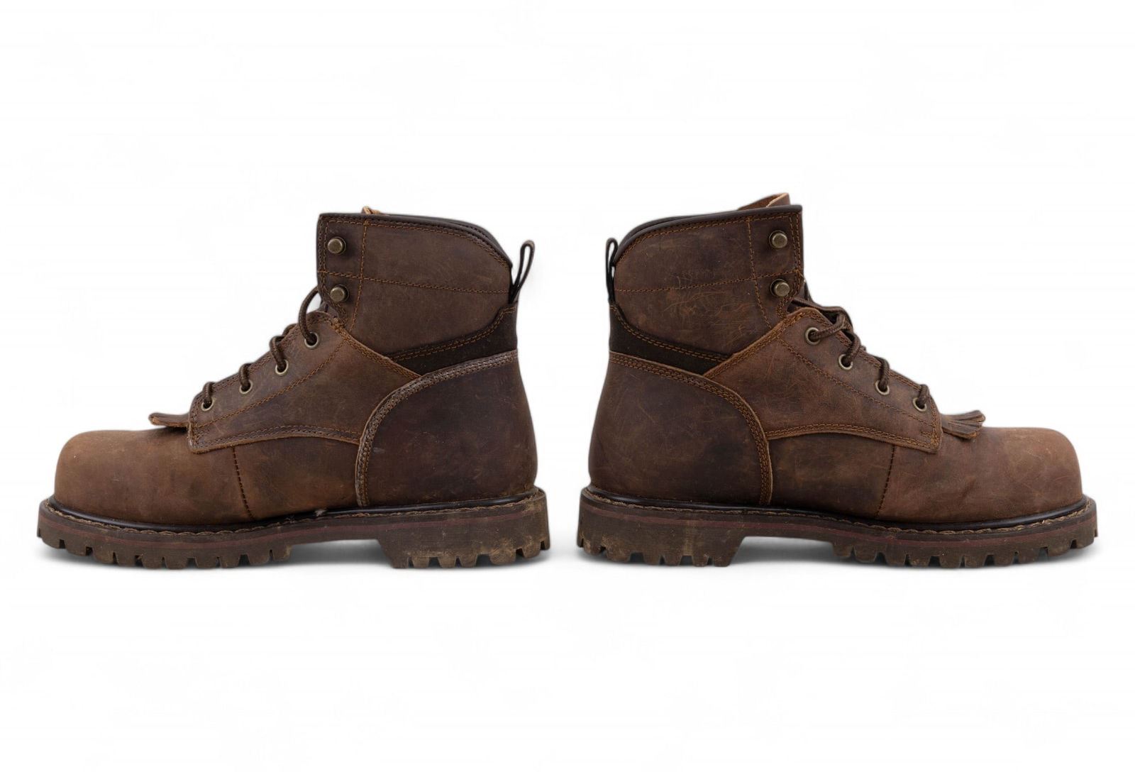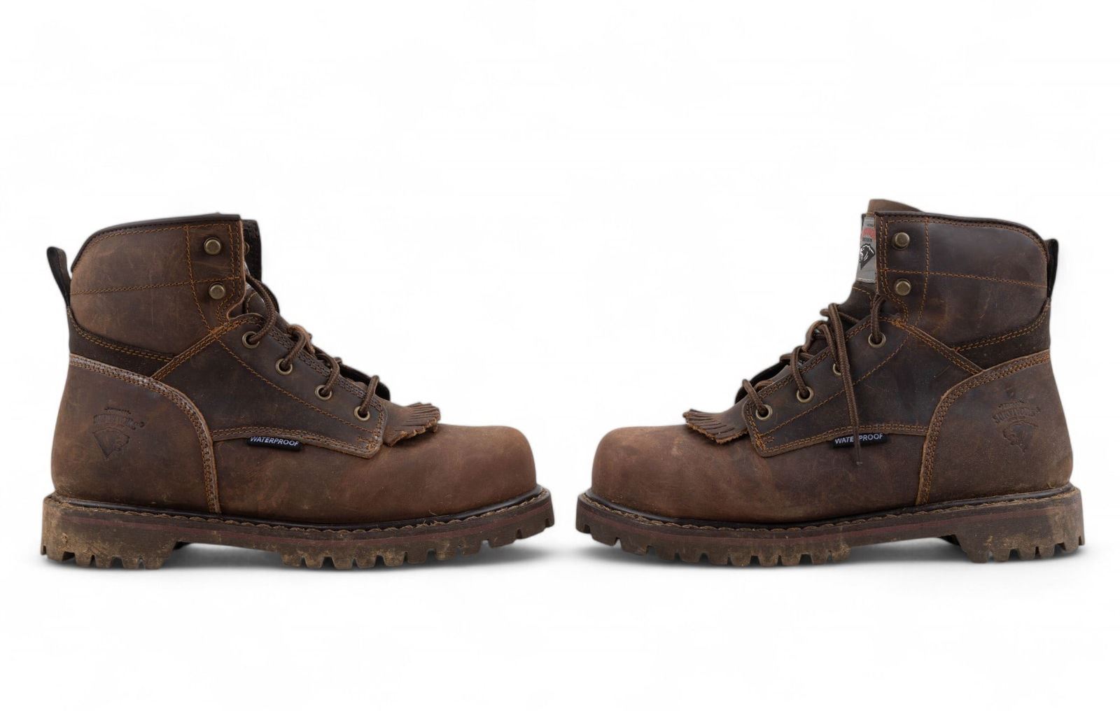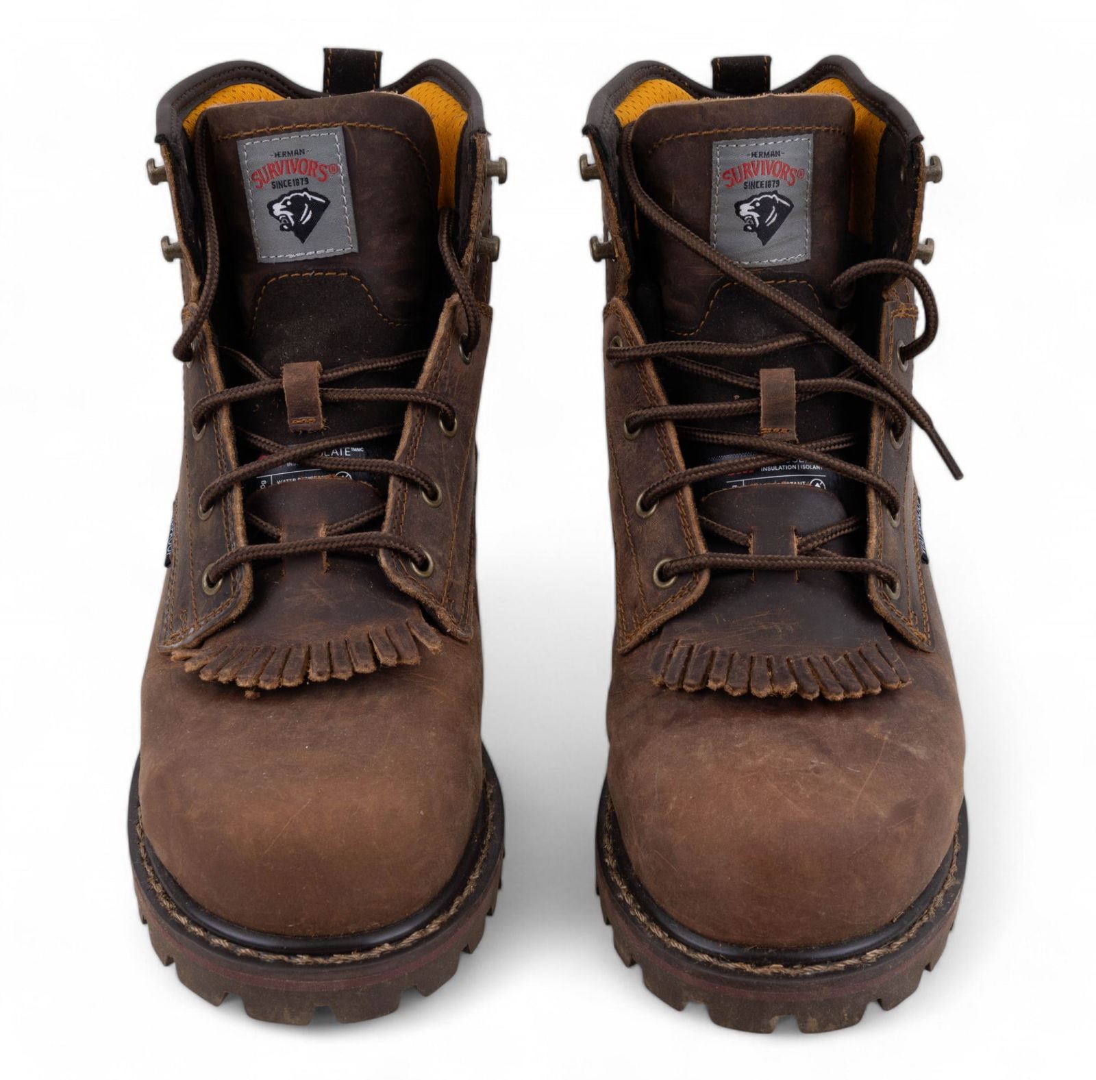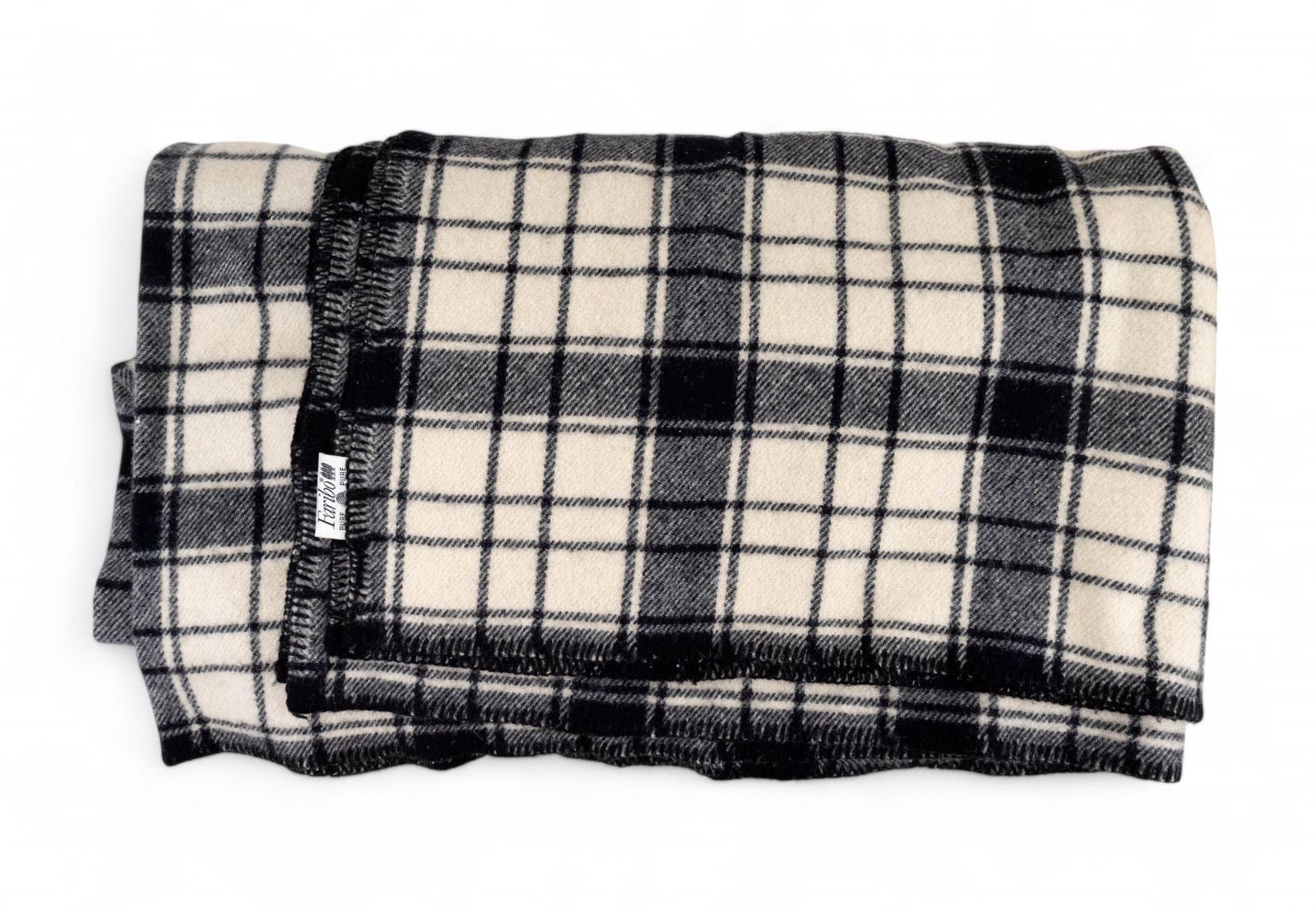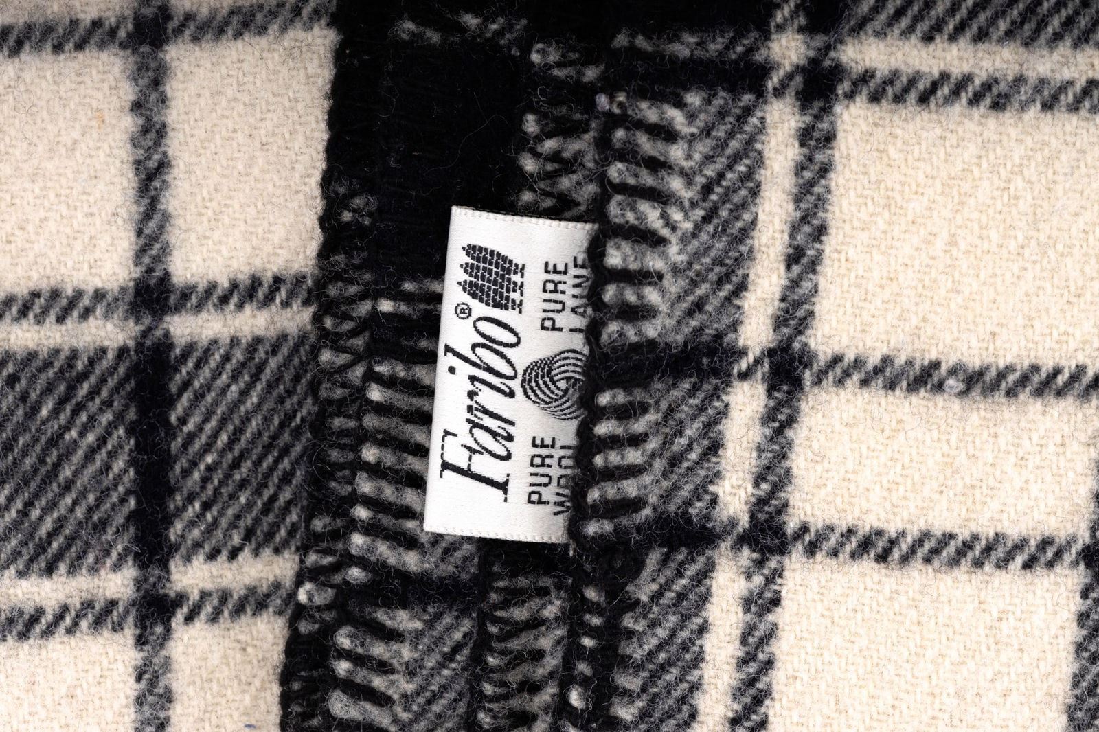 Faribo pure wool black and off white plaid blanket 84x90" and a pair of Herman Survivor steel toe 'Dover' brown leather work boots, size 8 mens.