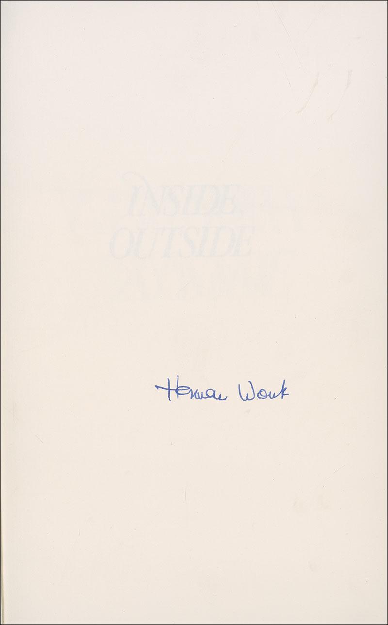 Signed book: Inside, Outside. First edition, first printing. Boston: Little, Brown, and Company, 1985. Hardcover with dustjacket, 6.5 x 9.5, 644 pages. Signed in blue ink on the third free end page. In fine condition, with a bit of scattered light wear to dustjacket.