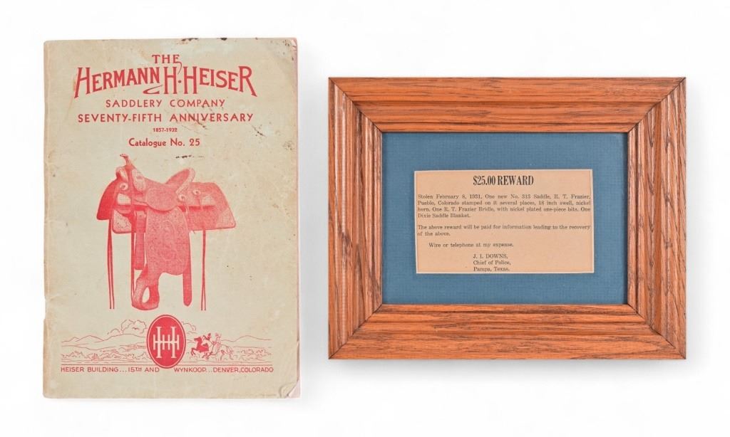 1935 Saddle Catalogue No. 25 75th Anniversary 1857-1932 Framed Reward for Saddle Theft Included.