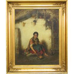 oil on canvas, signed and dated 1881, interior with young girl, 43 x 38 cm