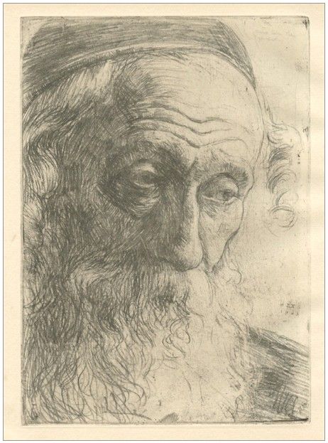 Hermann Struck "Old Jew from Jaffa" original etching - Medium: original etching. This Hermann Struck etching was printed on laid paper and published in Berlin in 1908 by Paul Cassirer. Plate size: 8 x 5 3/4 inches (205 x 145mm) - Professionally Framed & Matted - Comes With Certificate - -