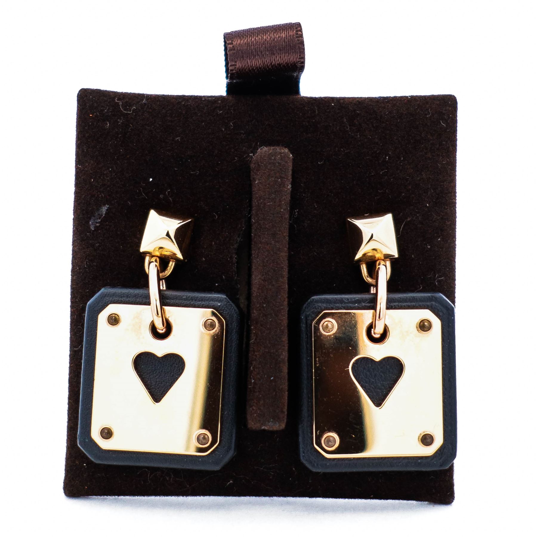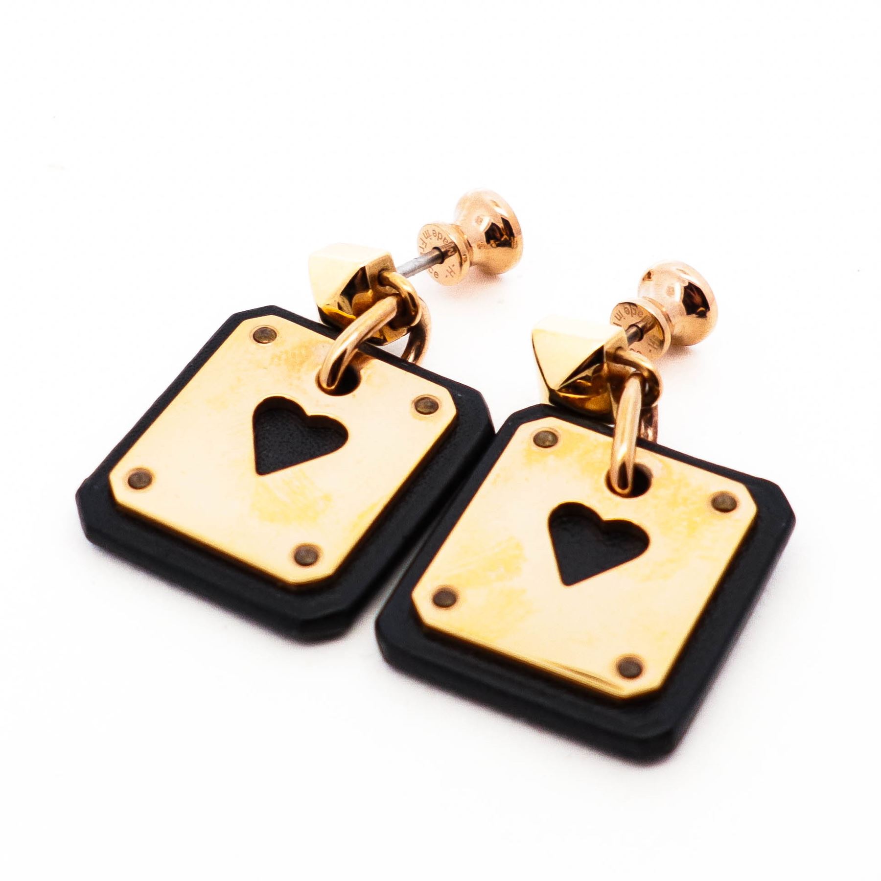 Authentic Hermes As de Coeur Earrings in Swift calfskin.& nbsp;