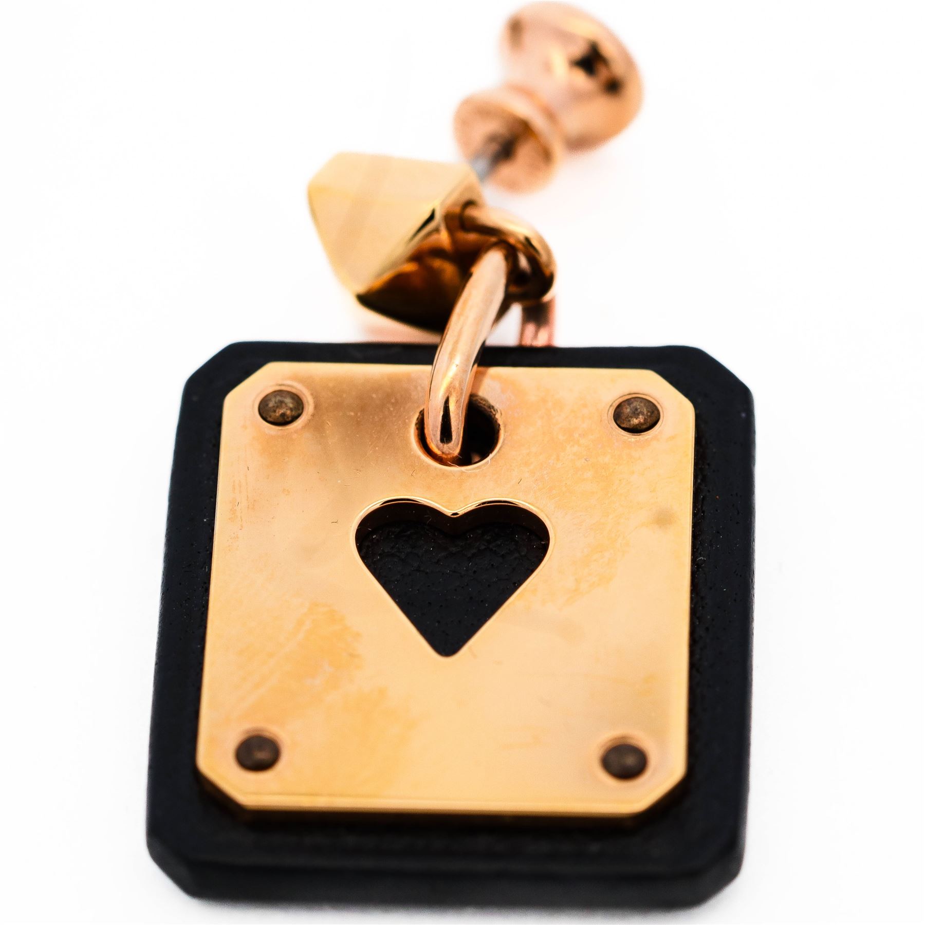 This elegant heart cut out in a metallic plaque, delicately pearled over the leather, highlights Hermes' silversmith and leather goods expertise.
