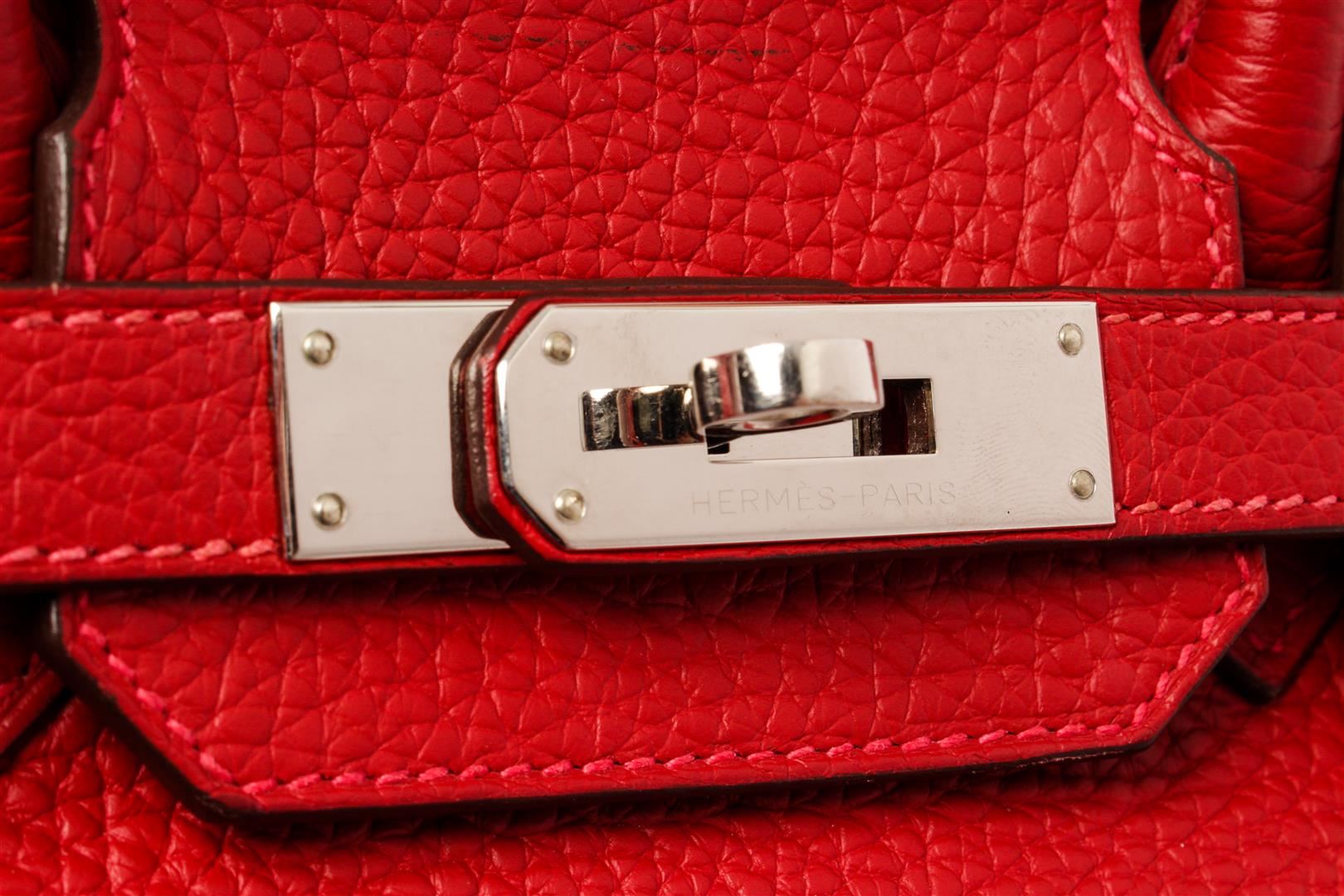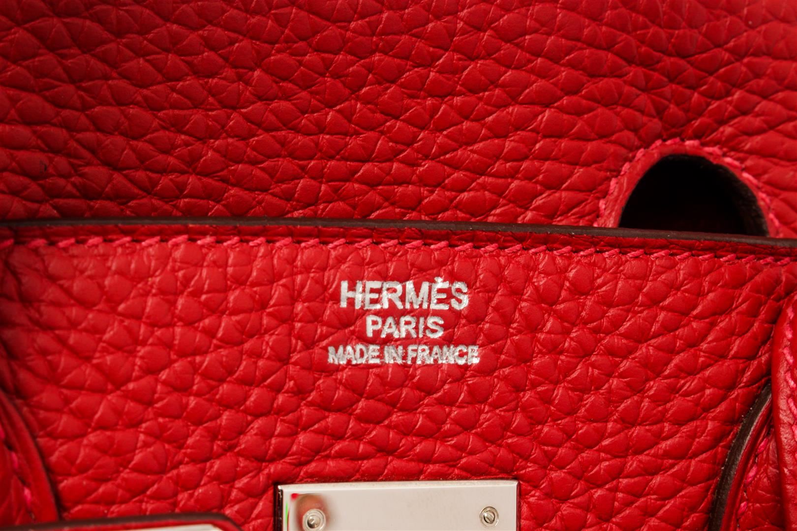 Hermes Birkin 30 Handbag. Brand: Hermes, Style: Birkin 30, Type: Handbag, Exterior color: Rouge Casaque, Interior color: Rouge Casaque, Length: 11.5, Width: 6.25, Height: 8.5. Item is sold AS-IS and all information pertaining to this lot is available in t
