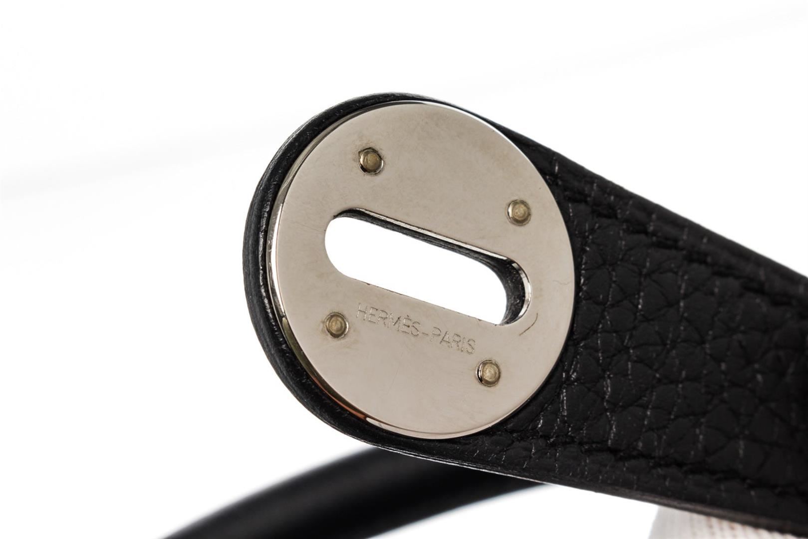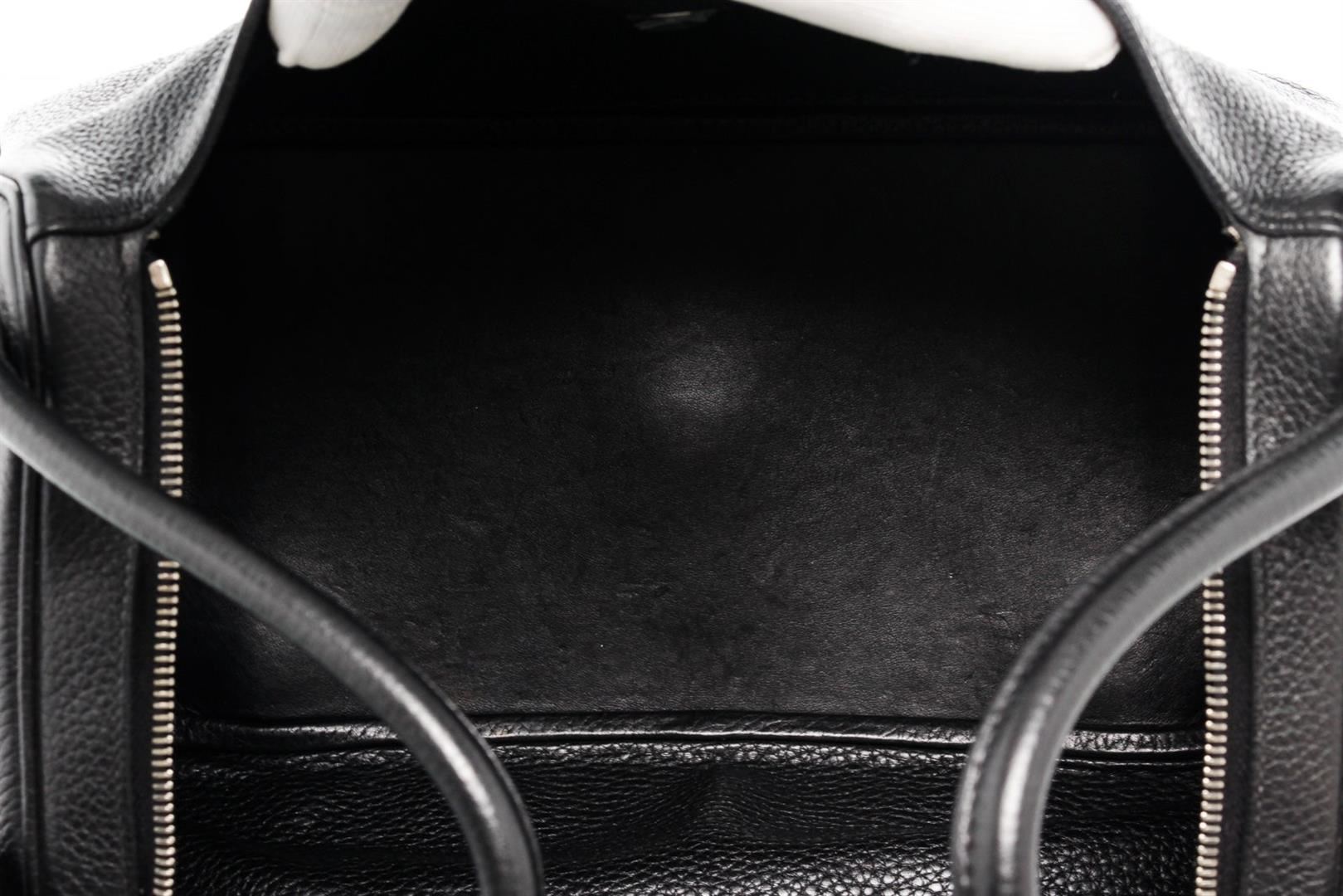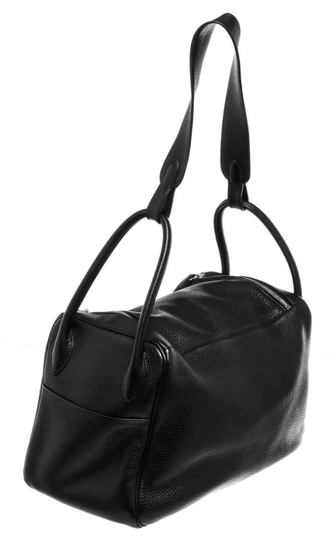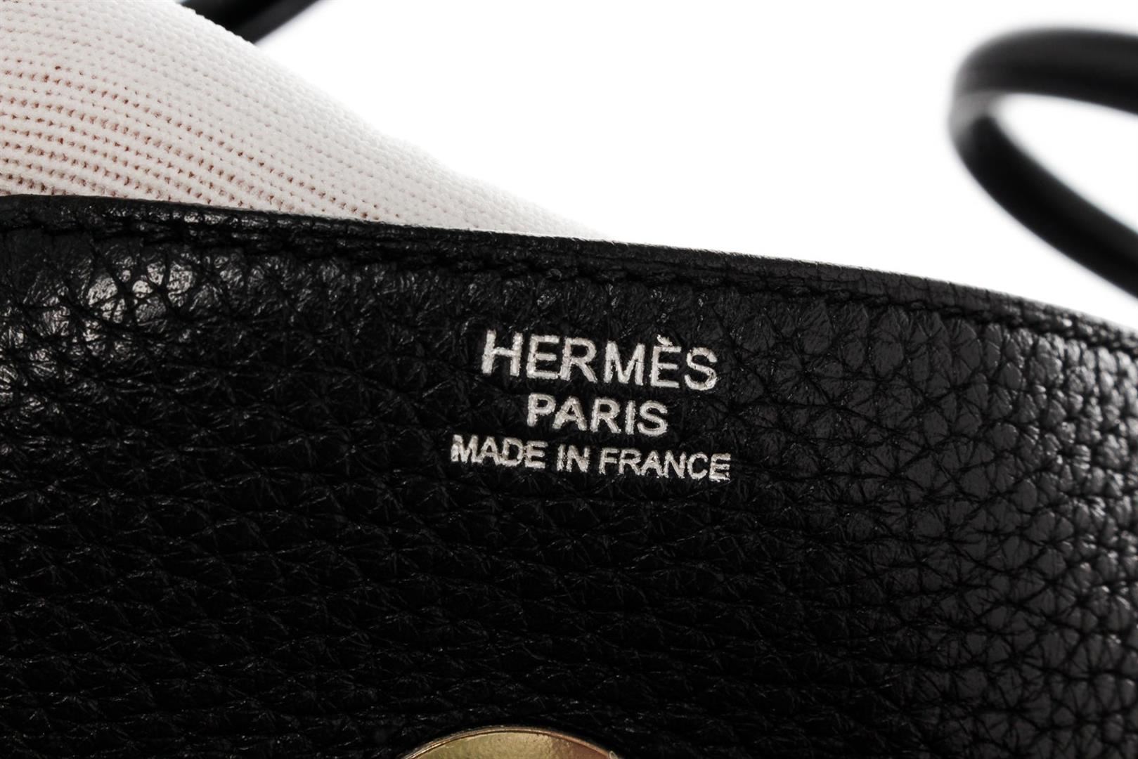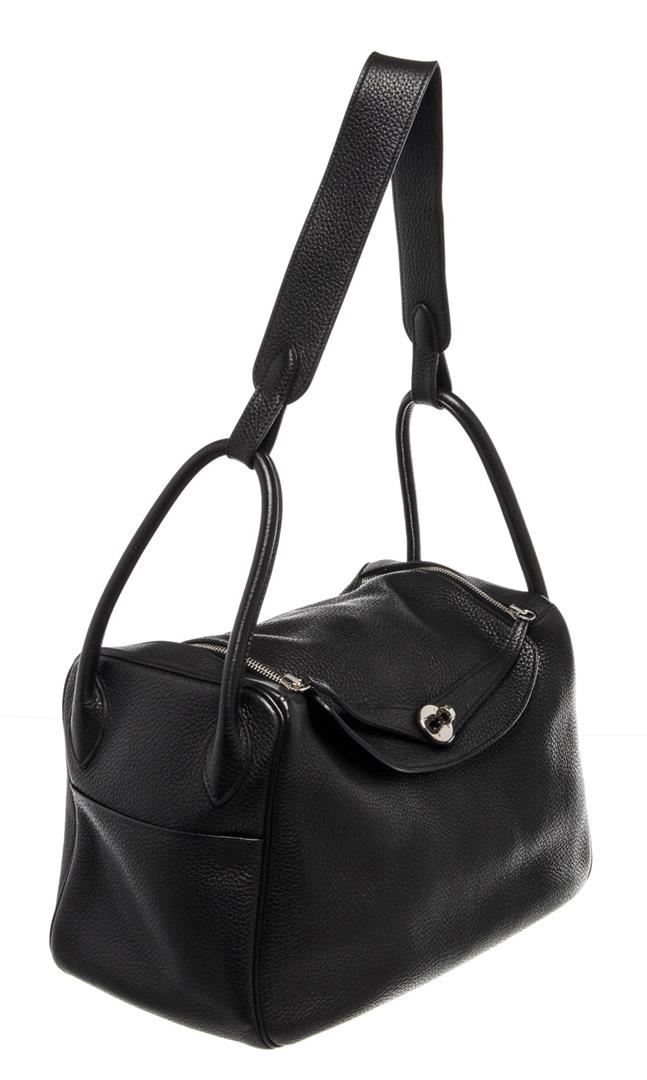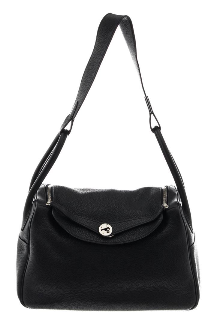 Hermes Black Clemence Lindy 34cm Shoulder Bag with leather, gold-tone hardware, trim leather, shoulder strap and zipper closure.