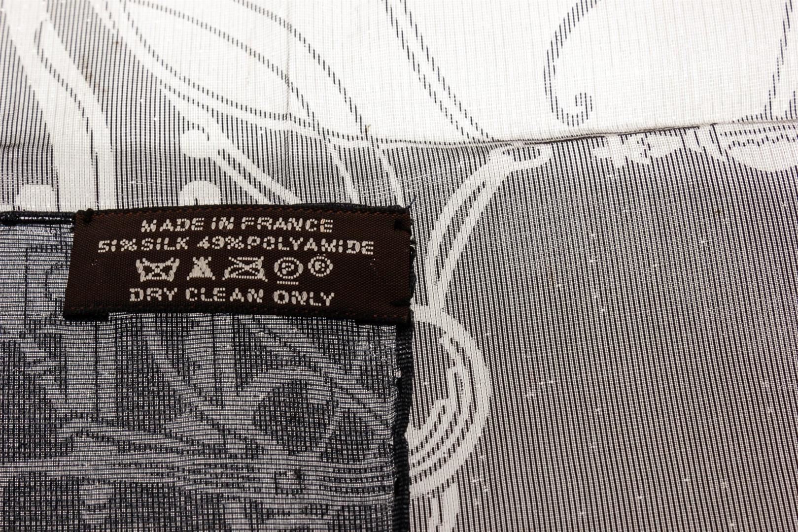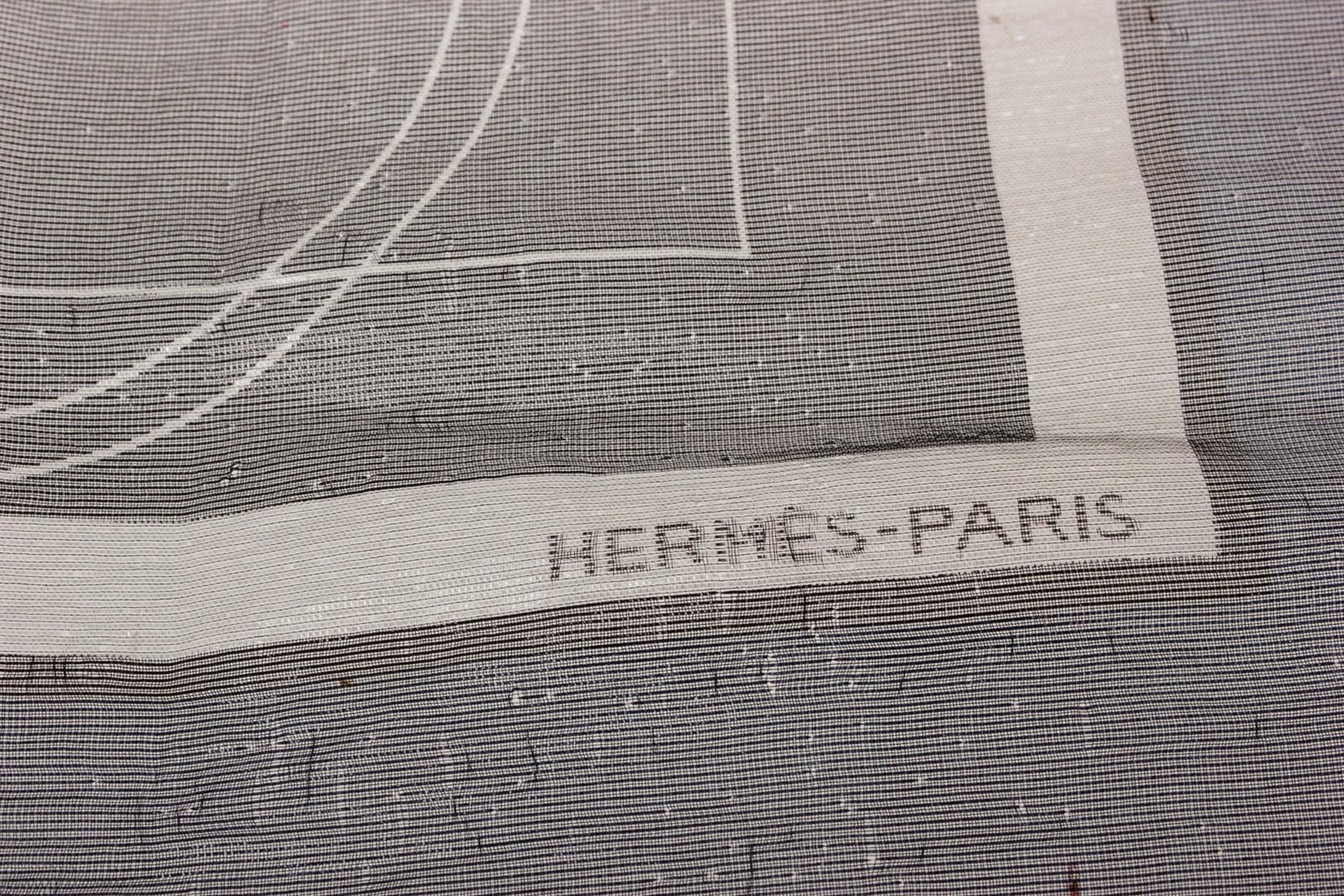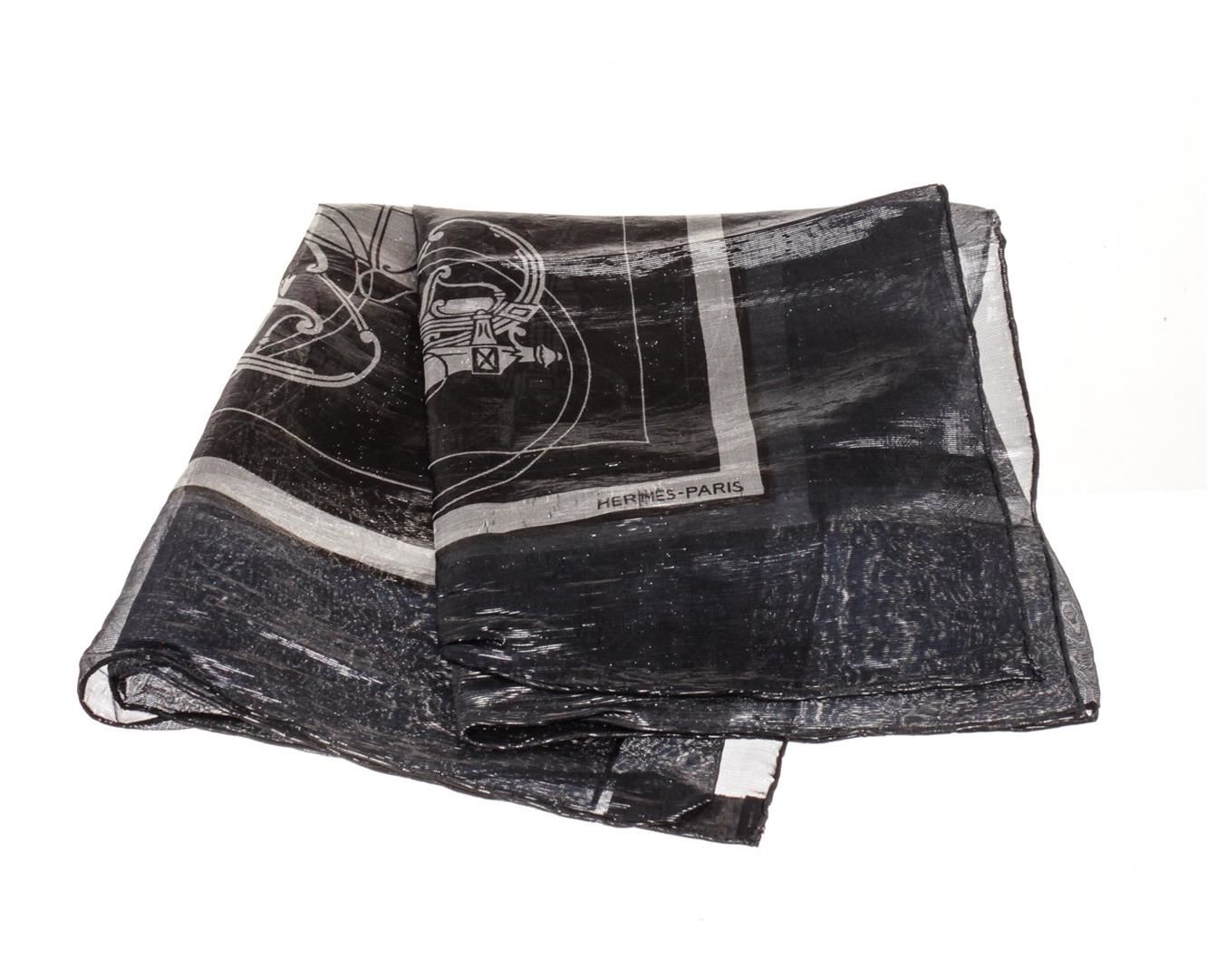 Hermes Black Grey Silk Scarf with gold-tone hardware.