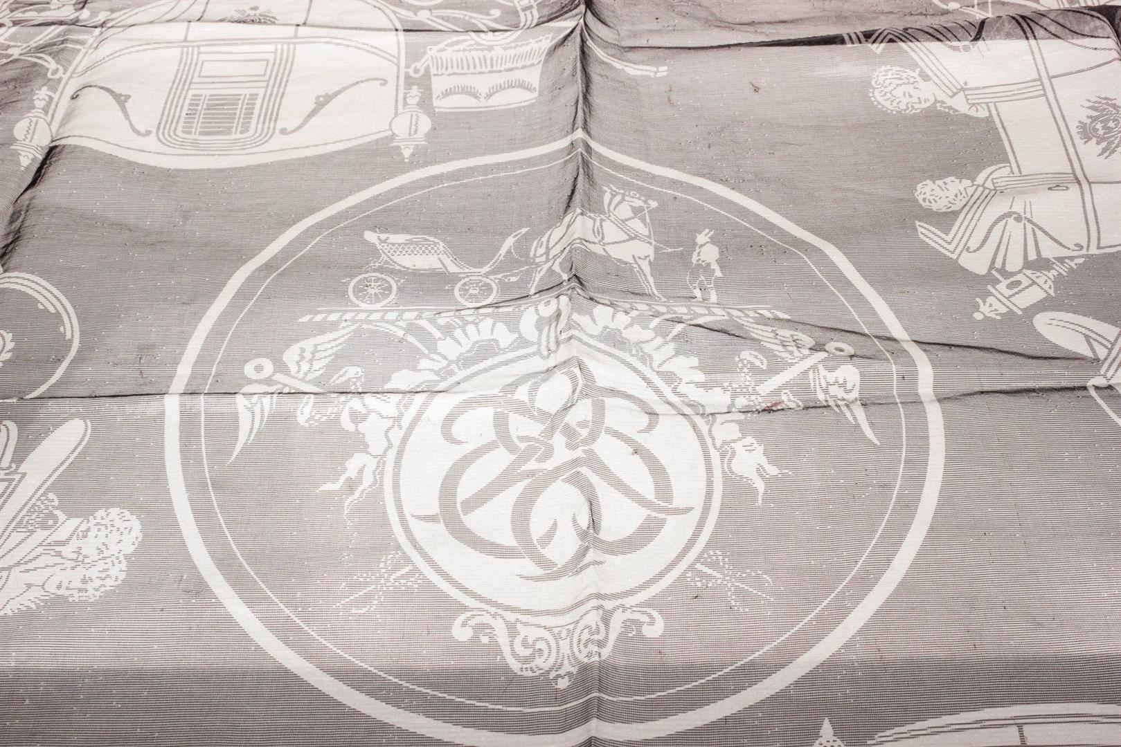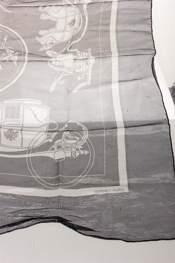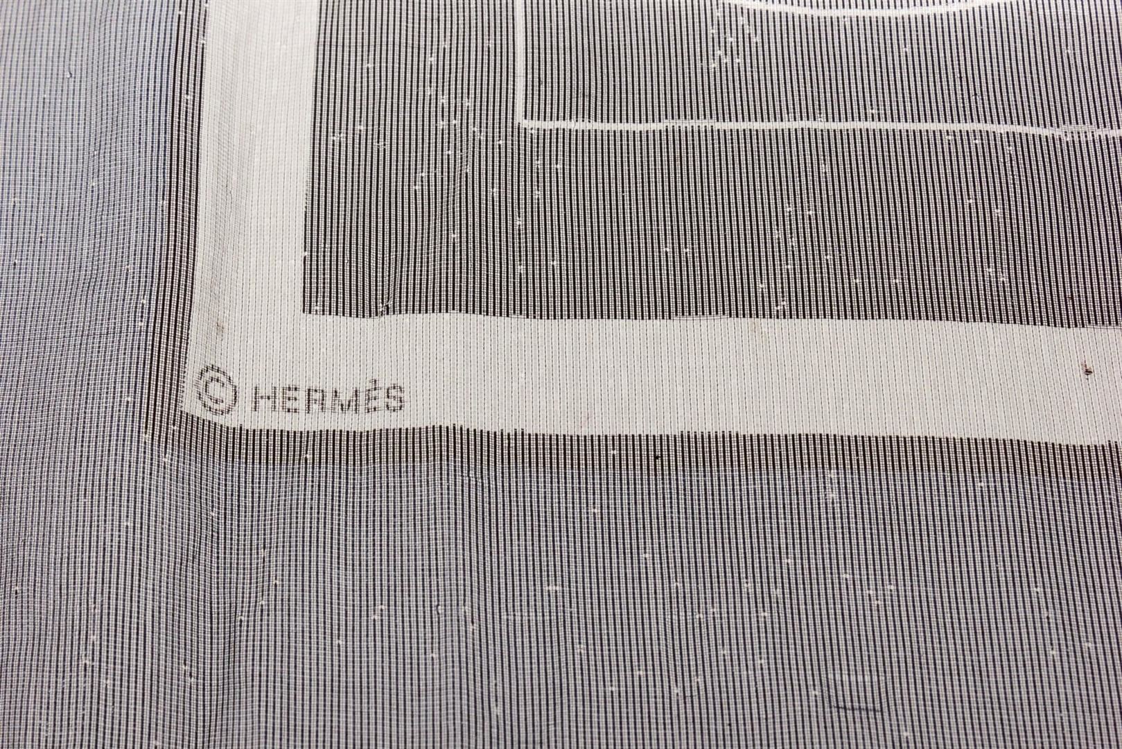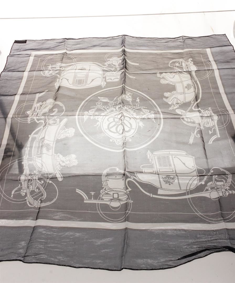 Hermes Black Grey Silk Scarf with gold-tone hardware.