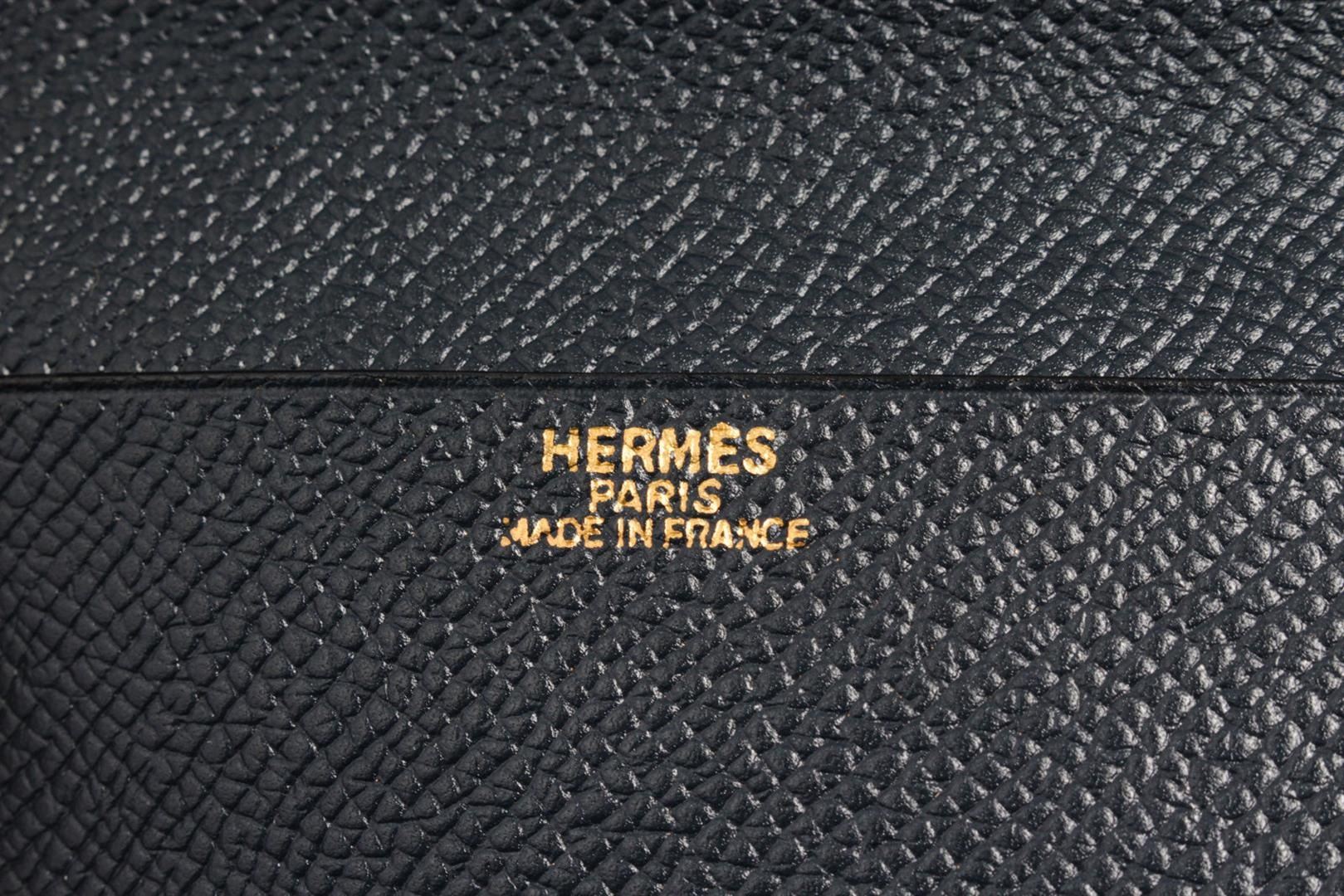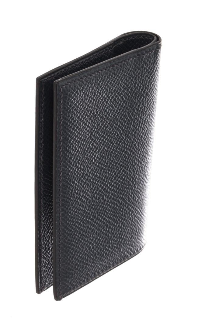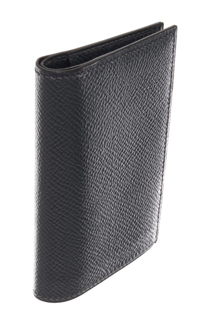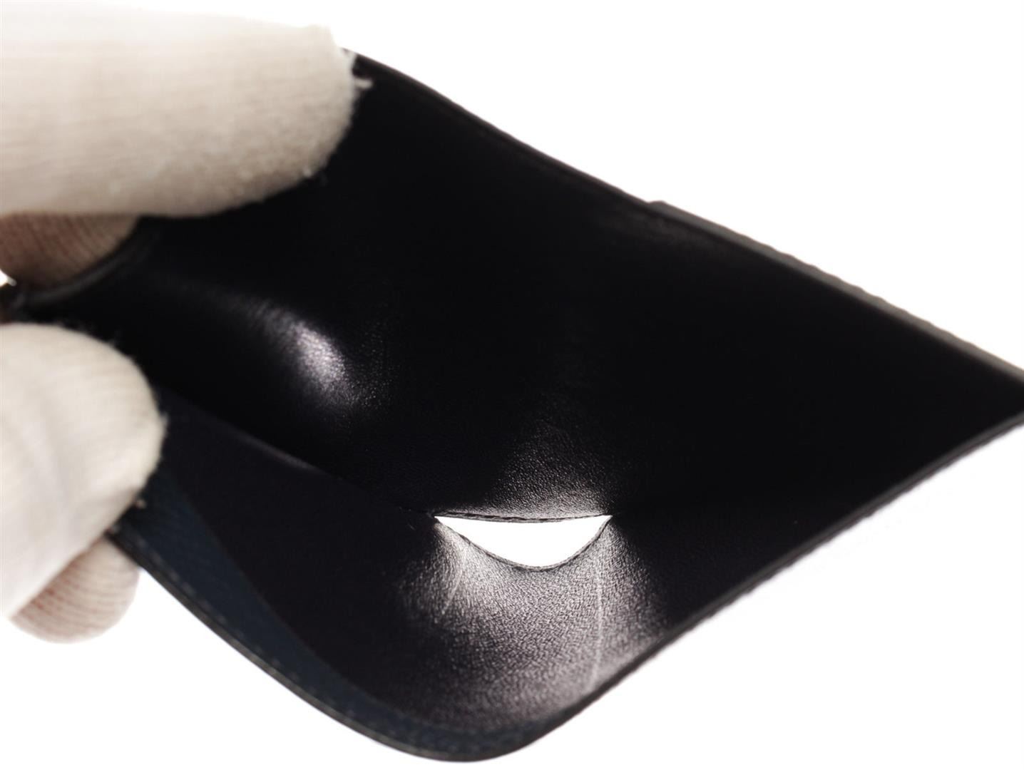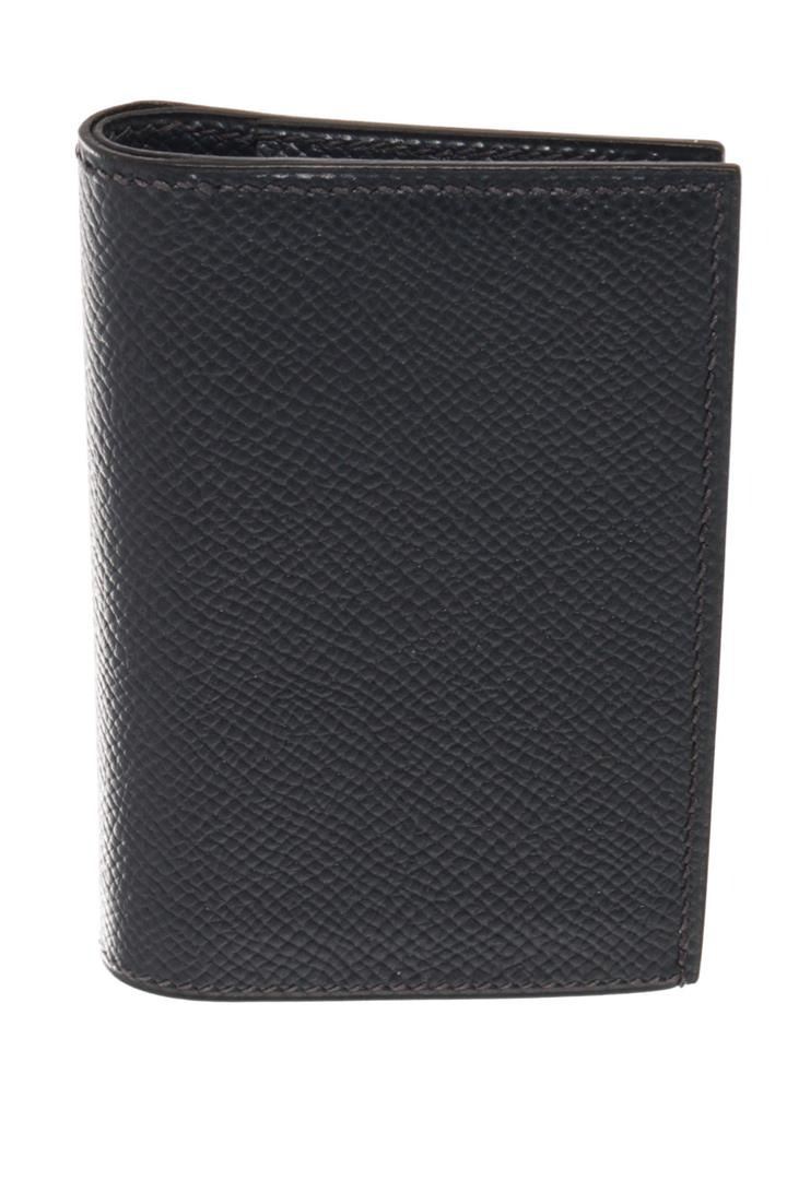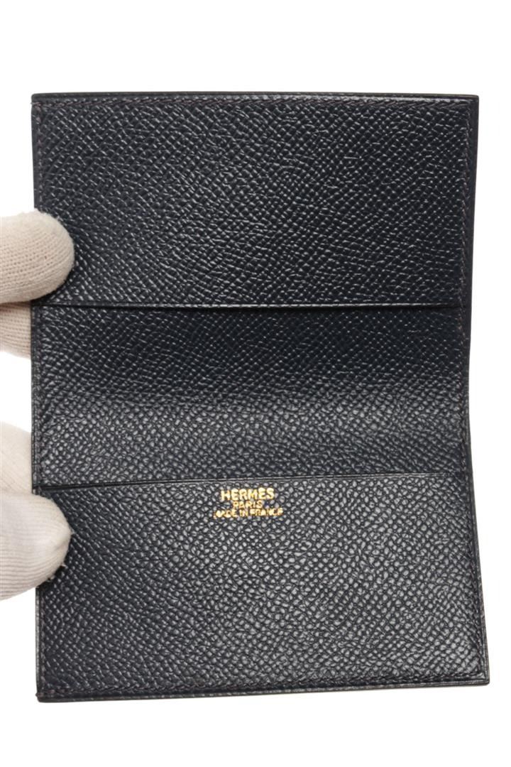 Black leather Hermes two fold card case. 4.1"x3"/10.5cm x7.5 cm