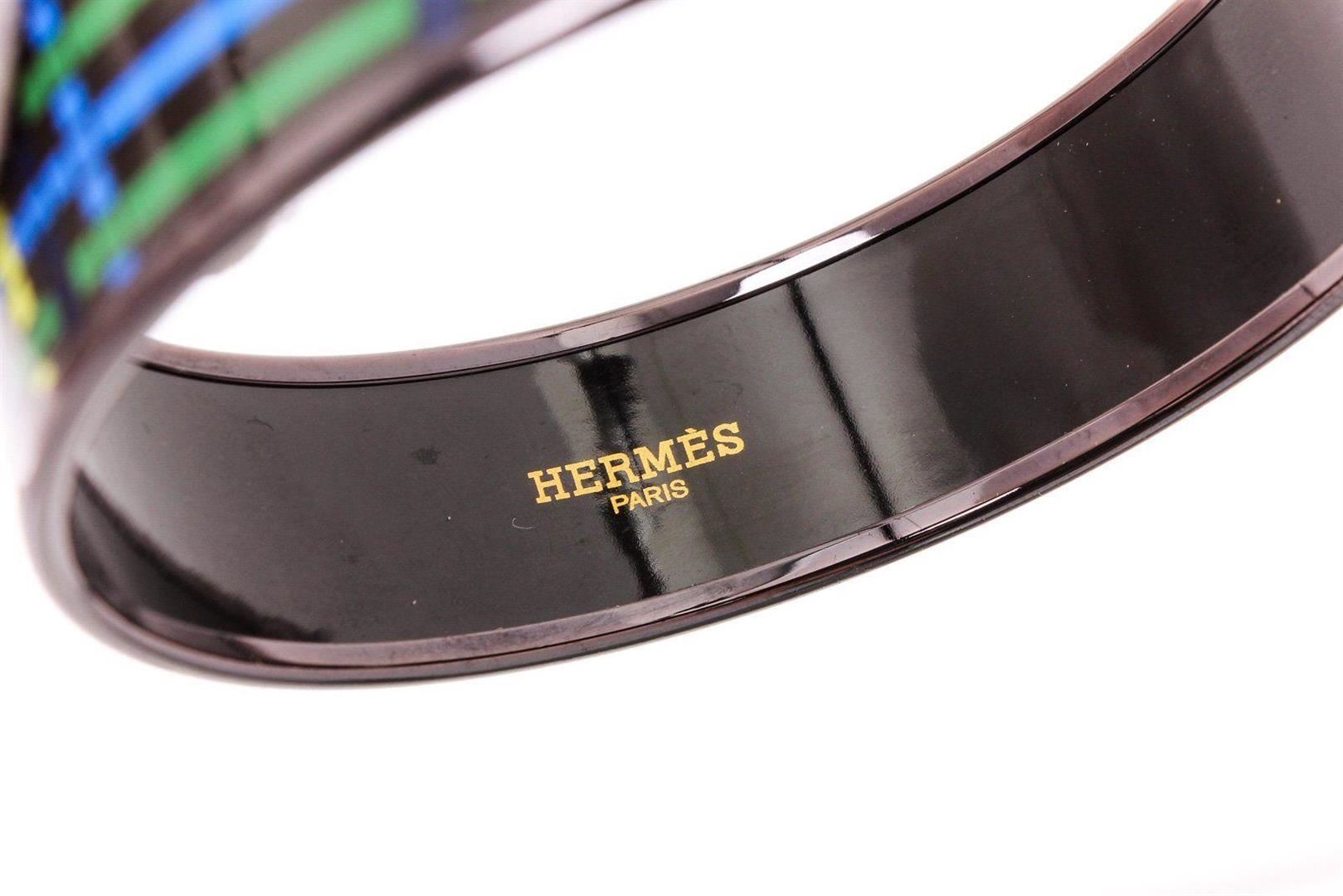 Hermes black plated black multicolor enamel bangle bracelet. Condition: Pre-Owned Good overall, please see photographs for detail.