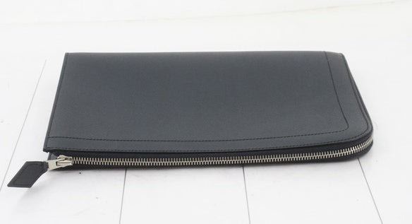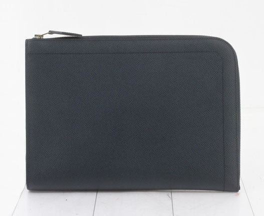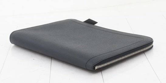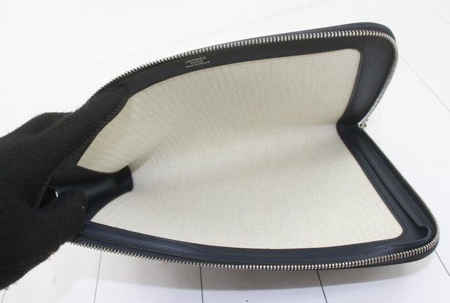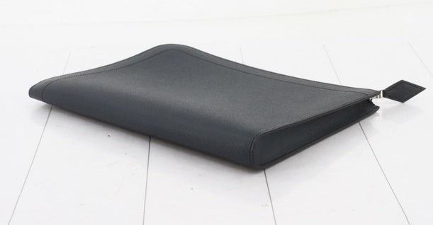 Hermes Zip Computer Laptop sleeve case in Bleu Indigo Veal Ver Grain leather, stunning dark navy/almost black color with silver-tone hardware, zip-around closure and neutral canvas lining. 6iHeight 10.8 in. ( cm) Length: 14.9 in. ( cm)