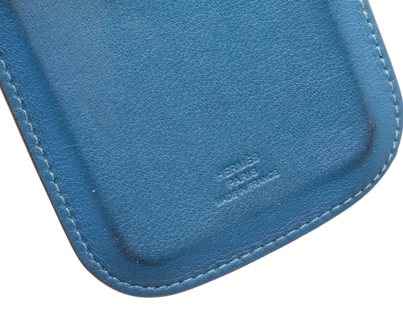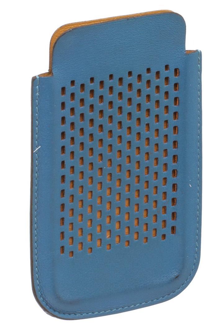 Hermes blue perforated leather iPhone 4 case with brown leather lining.