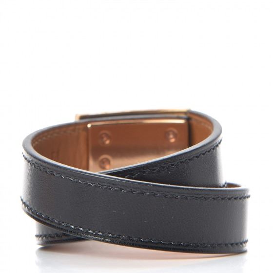 T1 Black cuff bracelet is crafted of box calfskin leather in black and features a pink gold closure.
