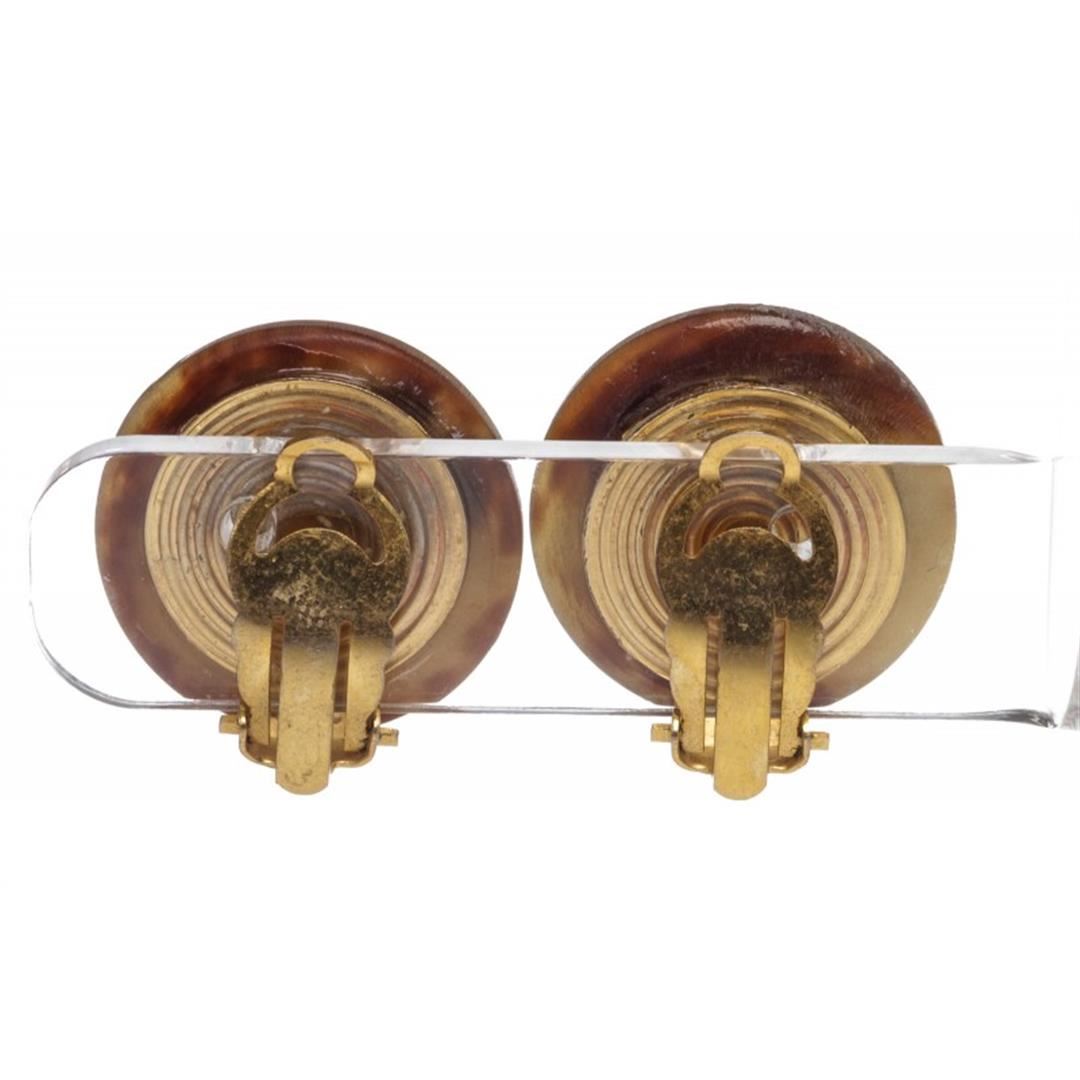 One pair of Hermes Bronze Two Tone Sellier Paris French Horn Clip On Earrings. Crafted out of brass and resin and clip on backing.