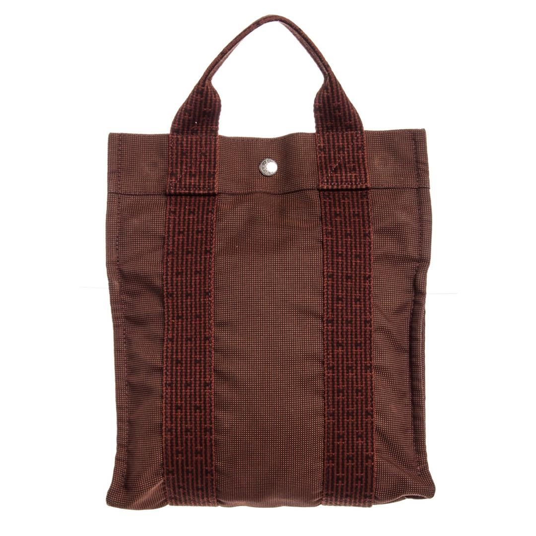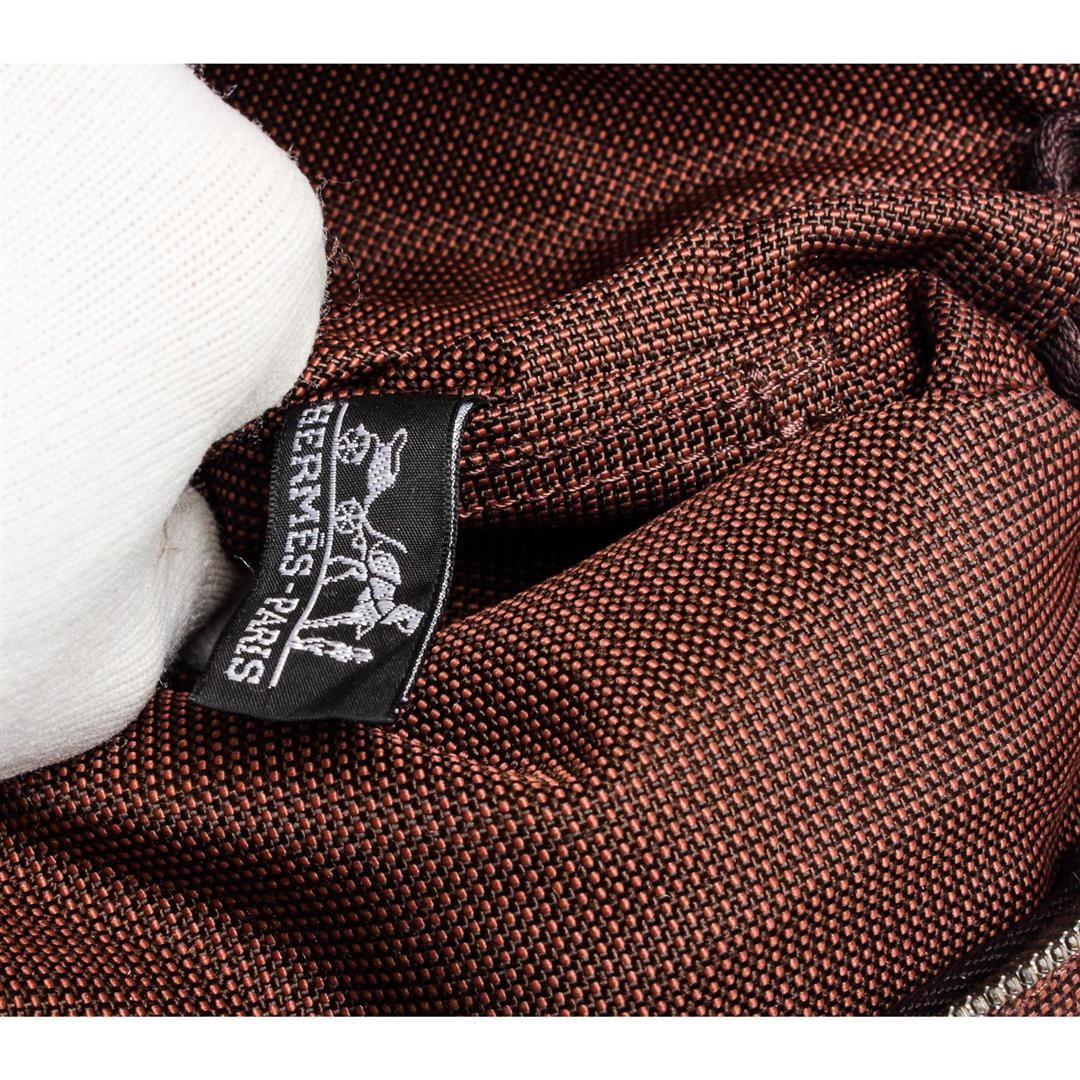 Overall zipper and snap closure. Interior is tonal canvas lined and contains one side slip pocket. Exterior zip top closure and dual flat handles. Hermes handbags